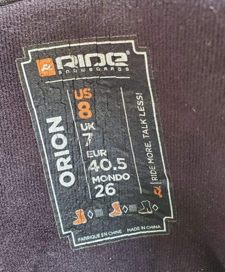 VenmoRide Orion Snowboard Boots. Mondo 26 which is a men's size 8 or a women's size 9 shoe size. Boots are in great condition. Text please.