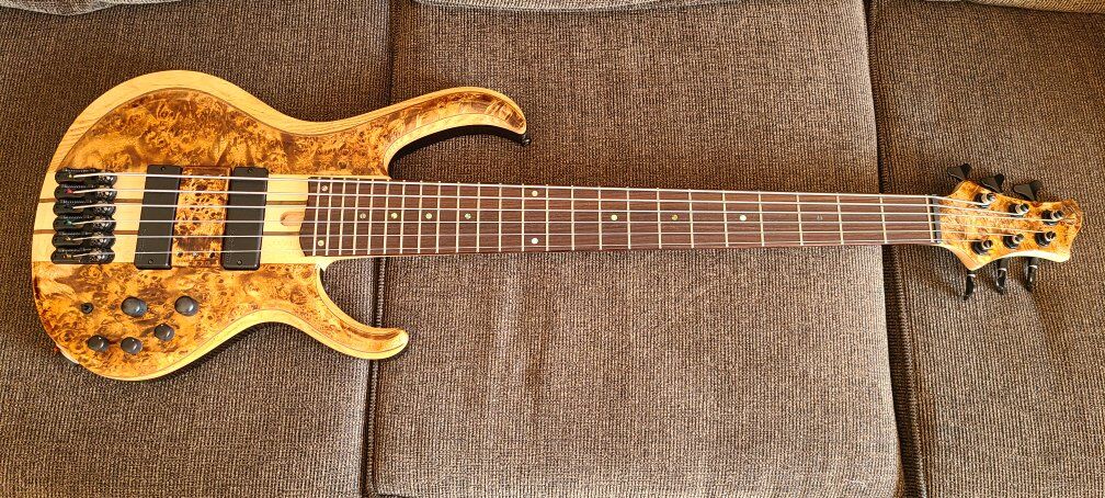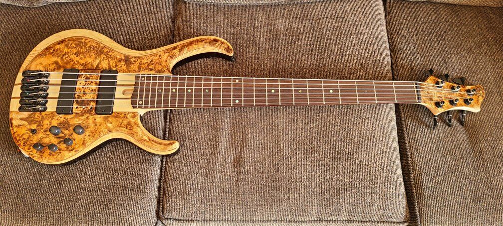 SCREAMING DEAL! 33" scale easy to play beauty - great for EXPLORING your possibilities. regular EADG and high C&F but can be strung standard BEADGC helped by the rigid reinforced neck-through. Ibanez Workshop bass no longer made. Great quality for learning 6-string bass and experimenting and soloing. Maple neck (Walnut laminates), Ash and figured Poplar body wings and gorgeous carmel top. Bartolini soapbars with flexible 3-band EQ. Good tuners. I really like the individual bridges per string. locking Neutrik output jack. gig bag and wide soft leather strap. D'Addario NYXL.