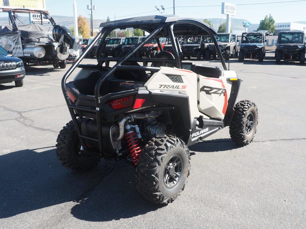 Includes Street Legal Kit 2025 Polaris® RZR Trail S Ultimate Power Through Tight Trails RZR Trail S features a slim stance, responsive power, sharp agility and all-day comfort. Features may include: Design With RZR Trail, the fun never stops thanks to an untouchable combination of comfort features. The improved cockpit ergonomics like the adjusted steering wheel position, bucket seats and full doors keep you out on the trails longer. Performance We built RZR Trail S as the quickest accelerating machine with a class-leading power-to-weight advantage and obstacle conquring torque. Trail Ready Technology Make the most of your time outside. RZR Trail uses advanced technology to elevate your ride experience with an industry-leading 7" Display, powered by RIDE COMMAND, and factory-installed premium audio. Full Doors 26" Tires Standard 1.25" Hitch Receiver LED Lights Electric Power Steering 3 Position Polaris Pulse Bar Rockford Fosgate Audio® Poly Sport Roof FOX® 2.0 PODIUM X Shocks Versa Trac Turf Mode LED Accent Lights Aluminum Rims 7" Display, Powered by RIDE COMMAND, with Factory Rear Camera