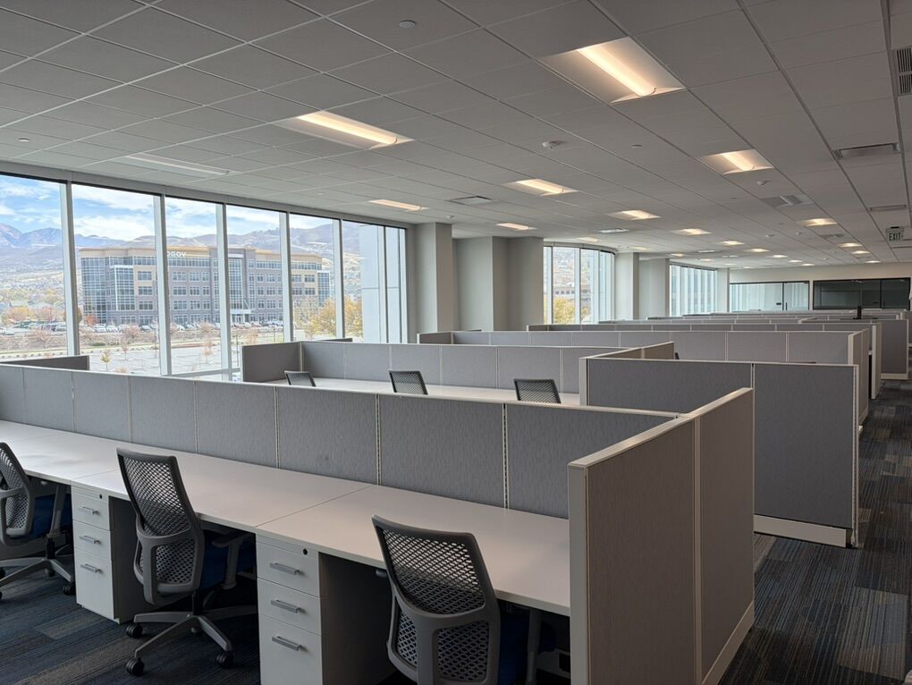 Gently used cubicle workstations. We designed and installed these new for our client. They have now moved to a new office. My company has full design services and we can design these into any office space. We can also buy parts to change these stations into a different layout like 6x6 stations or other. Also easily converted to SIT STAND stations. Please reach out for an incredible deal on these for your office!