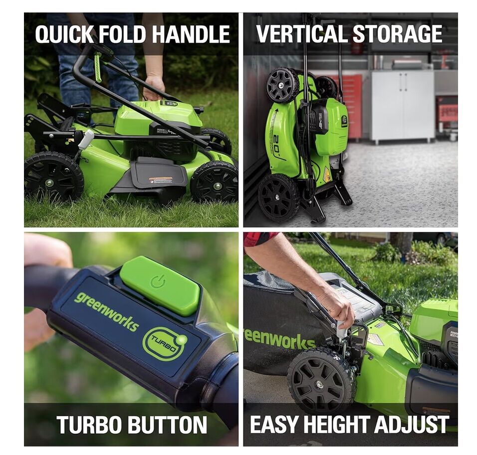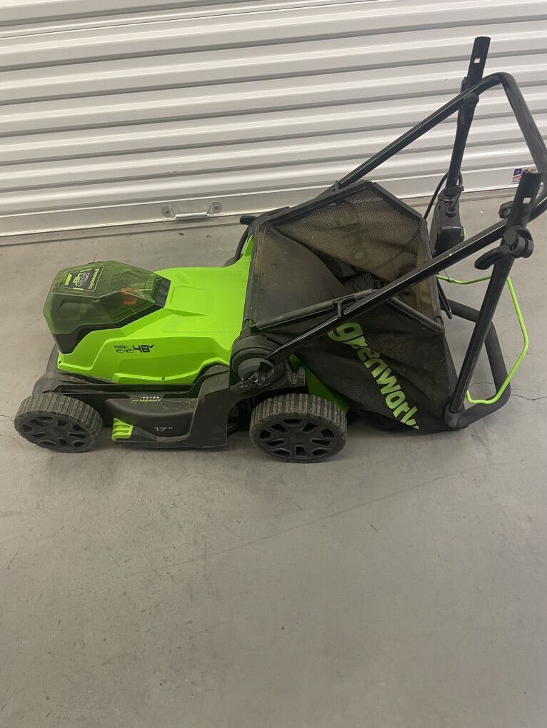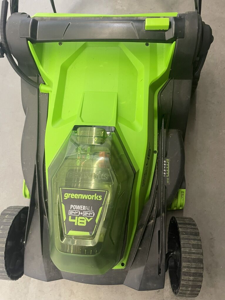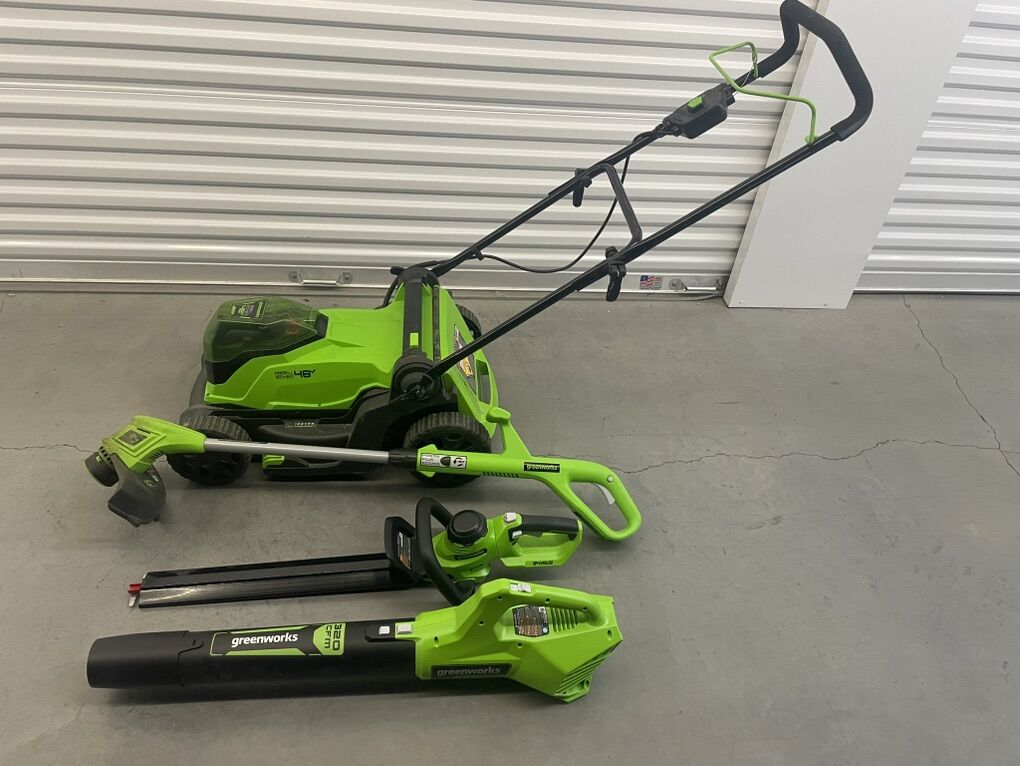 VenmoGreenworks 48V (2x24V) High - Performance Cordless Yard Tool Combo: 21 Self - Propelled Lawn Mower, 12 Trimmer & Blower, with 2 Batteries & 1 Chargers. Used with care, works great. Self pick up.