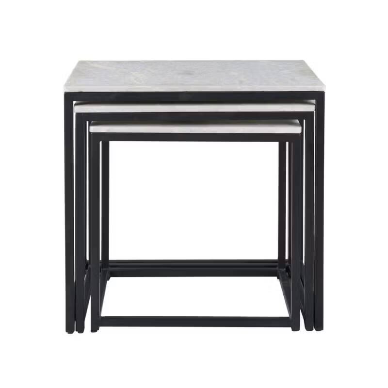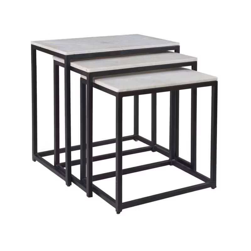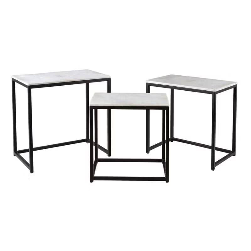 CashAppCoast To Coast Home 3 Tier White Marble & Ponga Black Iron Rectangular Nesting Tables