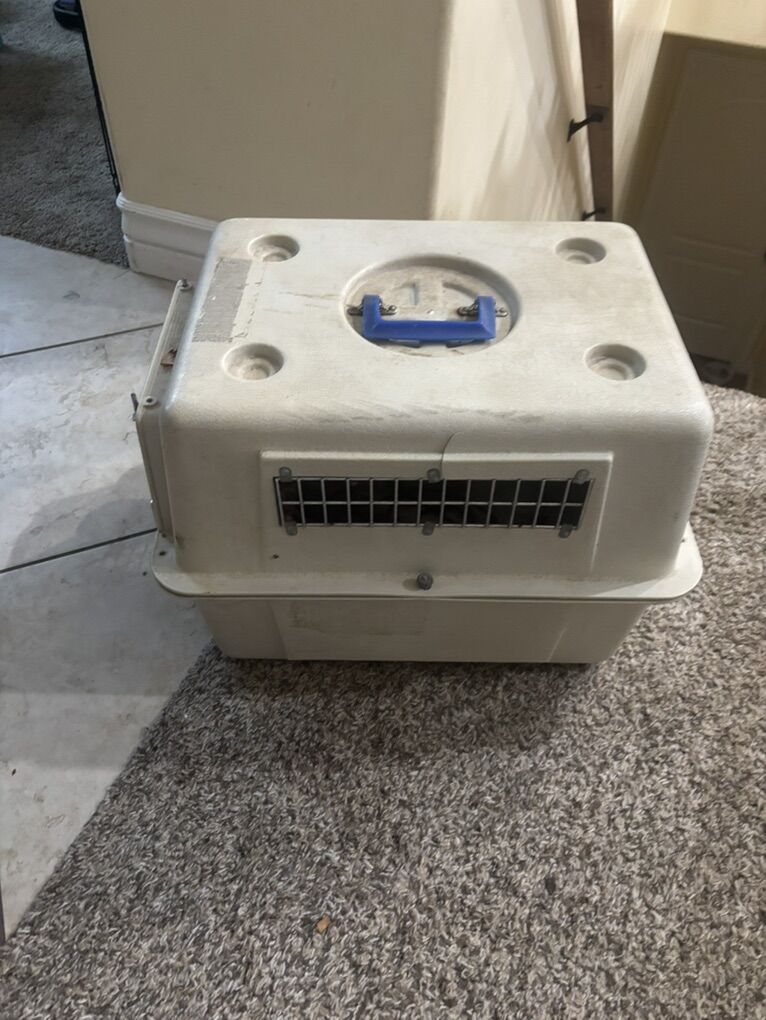 This crate is a little bit bigger than a very small cat crate. Sturdy and locks tight. I think it is Airline approved.