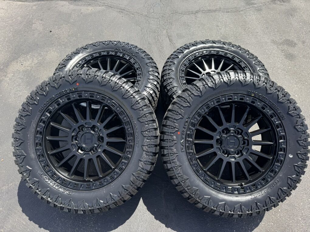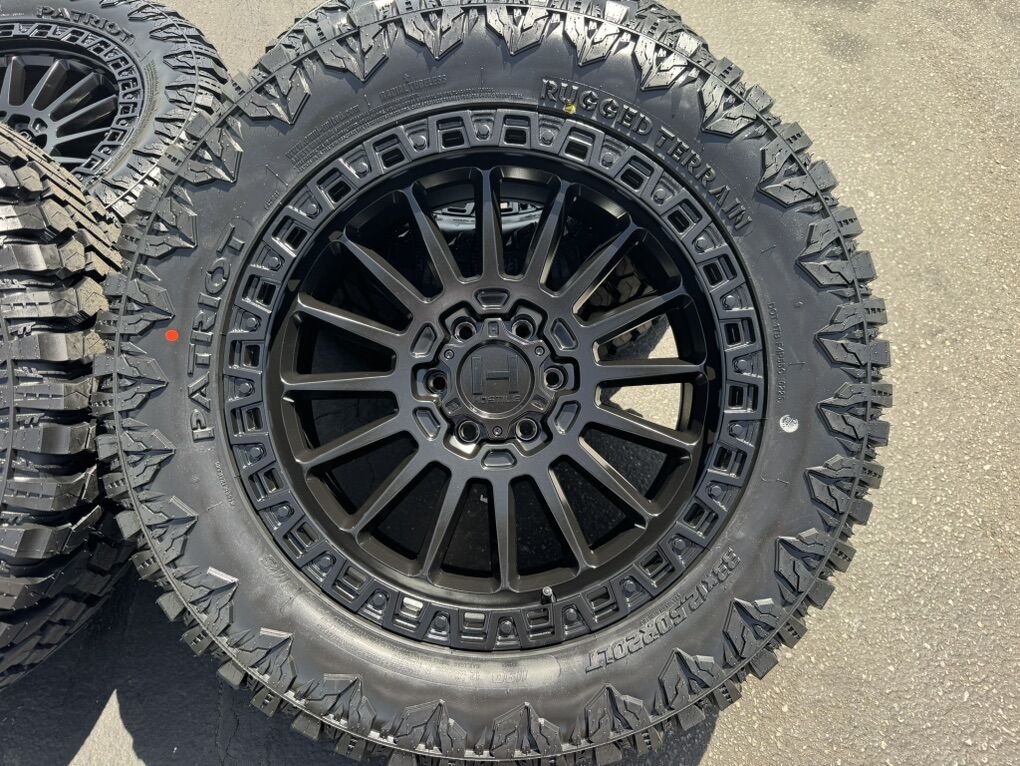 Brand new wheels and tires. Stickers still on everything, never mounted to a truck. Tires are Patriot R/T 33x12.50x20 12 ply Load Range F
