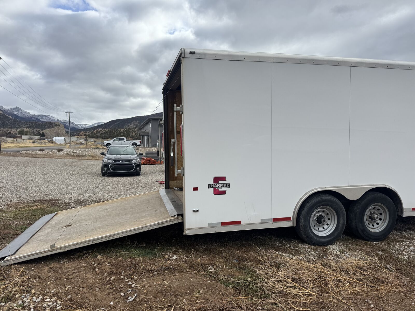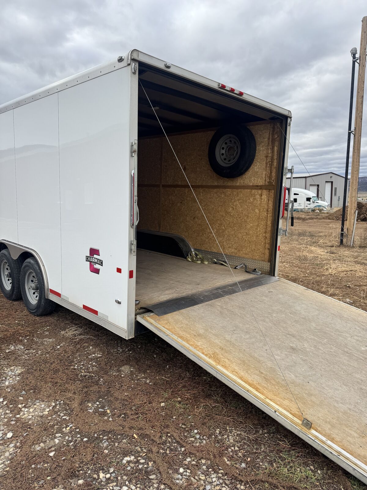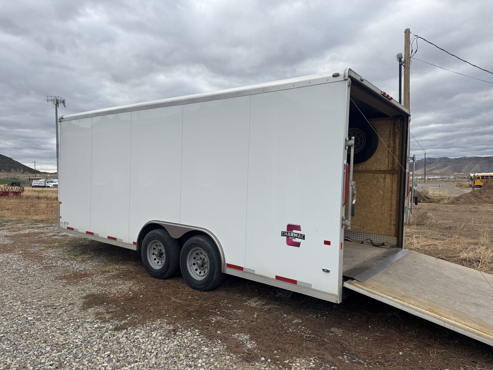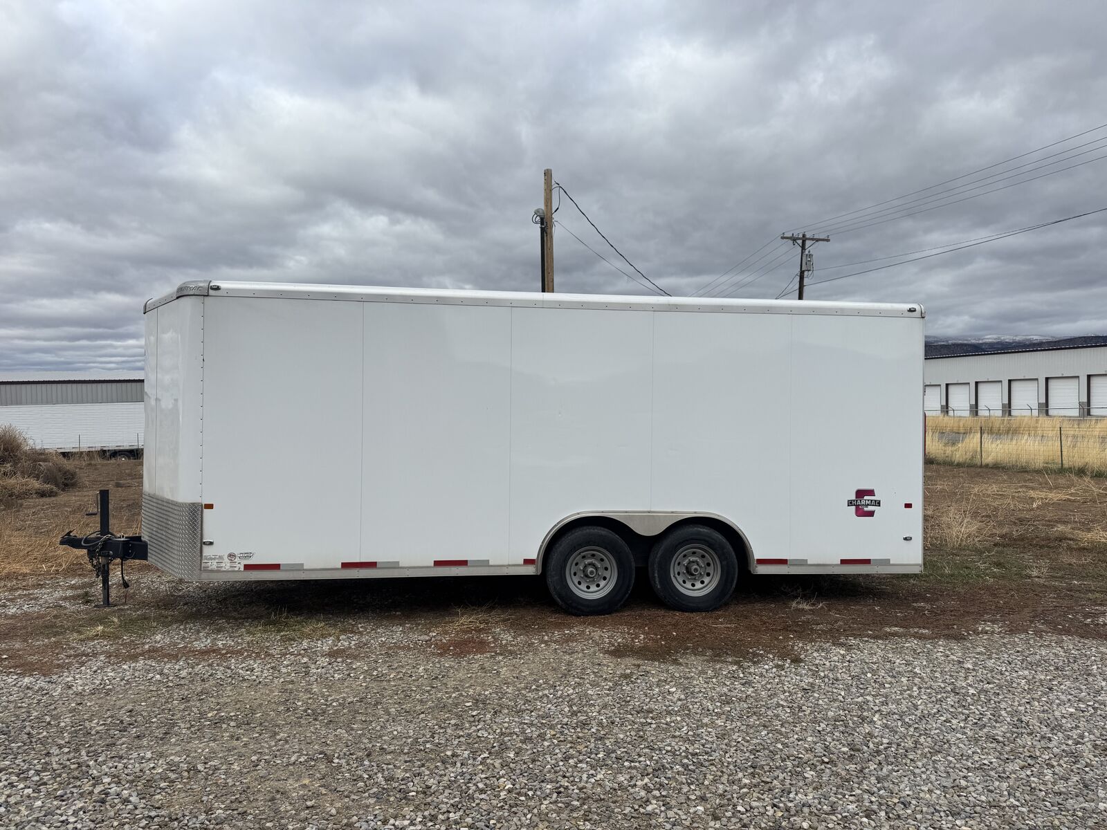 2020 Charmac 100" x 20' Commercial Duty (CD) enclosed trailer in excellent condition. Heavy-duty build with tandem 6K torsion axles, 12,000 lb GVWR, and a 3,150 lb dry weight. Pulls straight, extremely stable, and well cared for. Specs: • 20 ft length • 100” width (8’4”) • 7 ft interior height • GVWR: 12,000 lbs • Axles: 2 × 6,000 lb torsion • Payload: 8,850 lbs • V60 V-nose • 2-5/16” coupler • Color: White Features: • HD cable-assist rear ramp door • Side entry door • LED lighting package • 16" on-center roof bows • Solid floor and doors • Great for cars, equipment, tools, SxS’s, contractors, or mobile business setups Condition: Excellent overall. Everything functions smoothly. Tires in good shape. There is a small cosmetic wear spot on the inside of the ramp (pictured) — does not affect function. Clean title in hand.