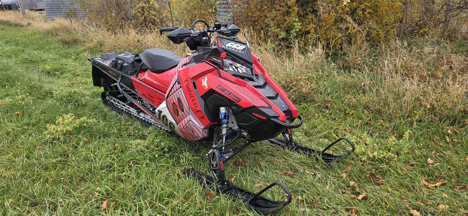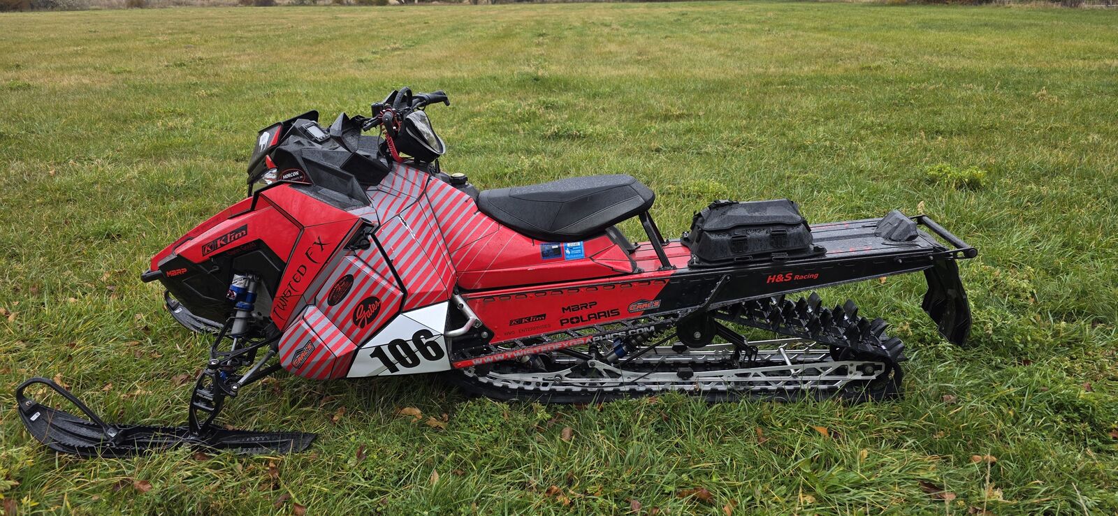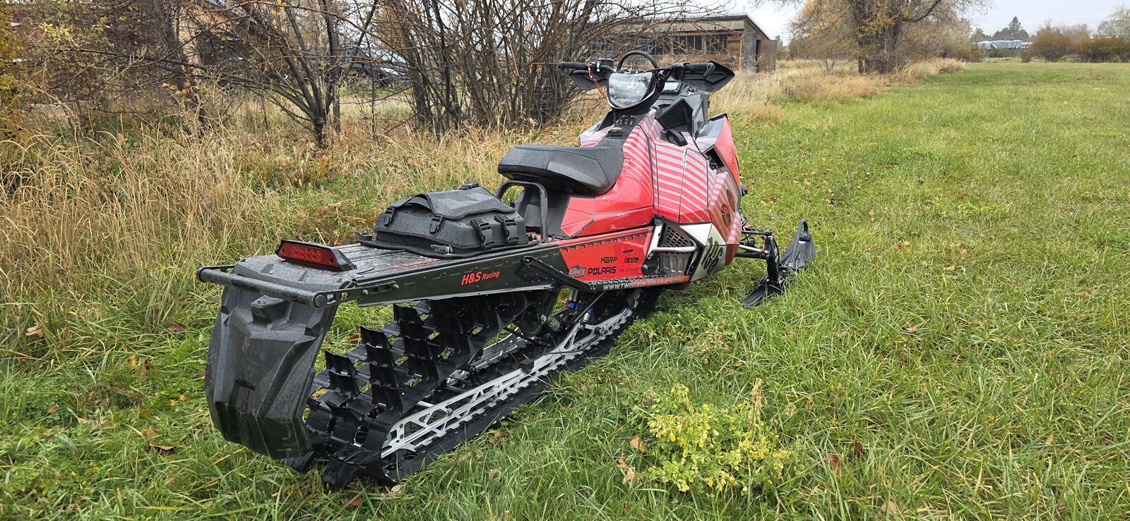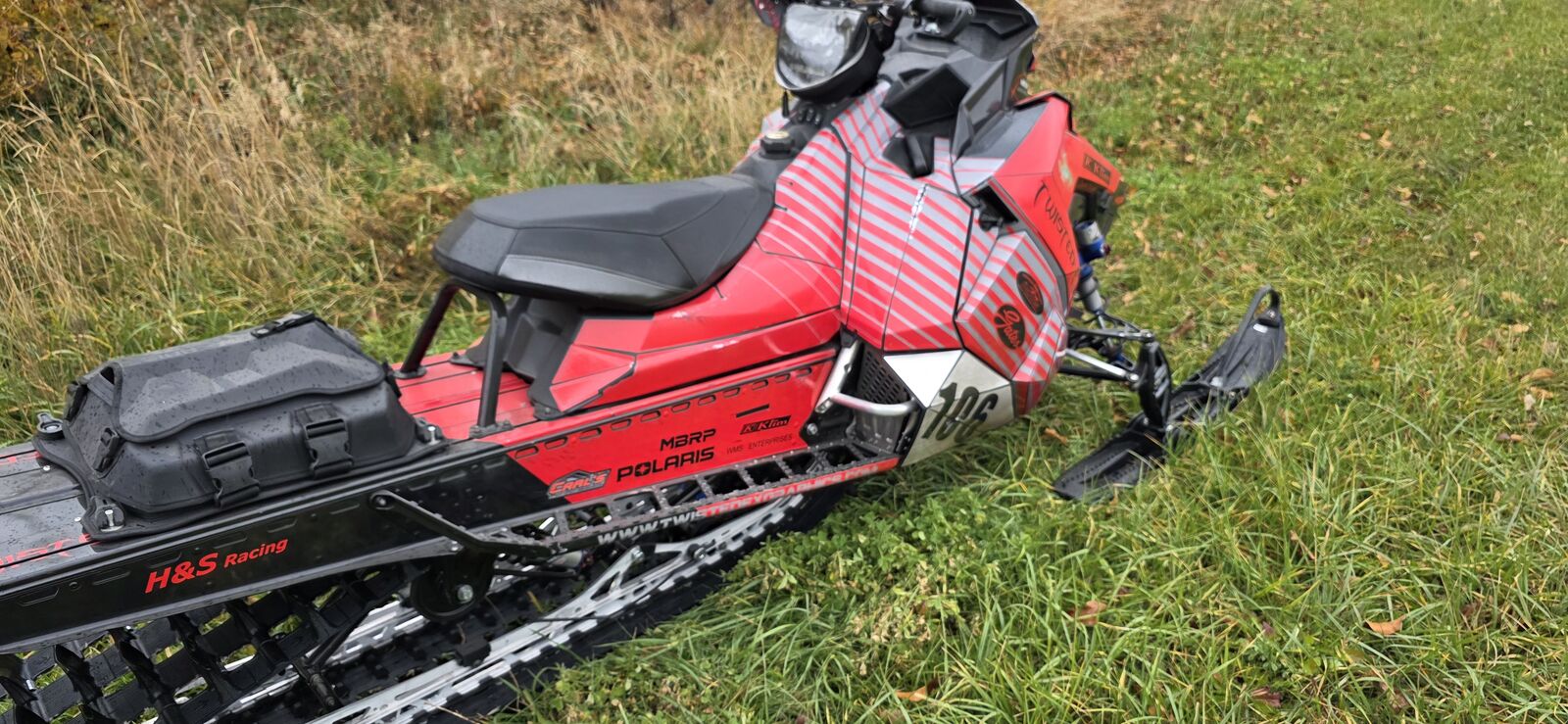 Exceptionally clean 2021 Polaris Khaos in excellent condition!! No rips or tears in the seat. You're fading in the plastics. Has a custom wrap. 3 inch lugs on track. No missing lugs. Machine has 1600 miles and is ready to go boondocking in the high country with you this season!! Has the adjustable shocks, ice scratchers, shovel bag, and much more! Machine has always been kept inside! This thing has power for days!! Don't miss out! Call now: 4357731985.