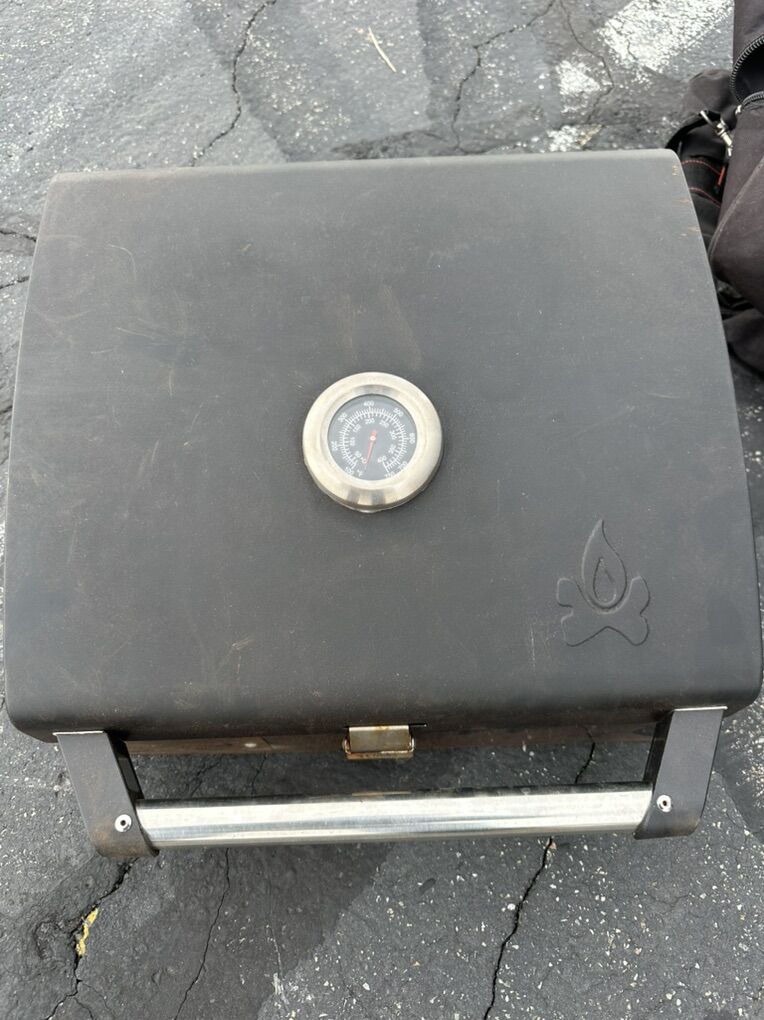 CashAppCamping grill or table grill of ur porch or car works good temperature grill and charcoal grill works good tuff and strong and with bag .