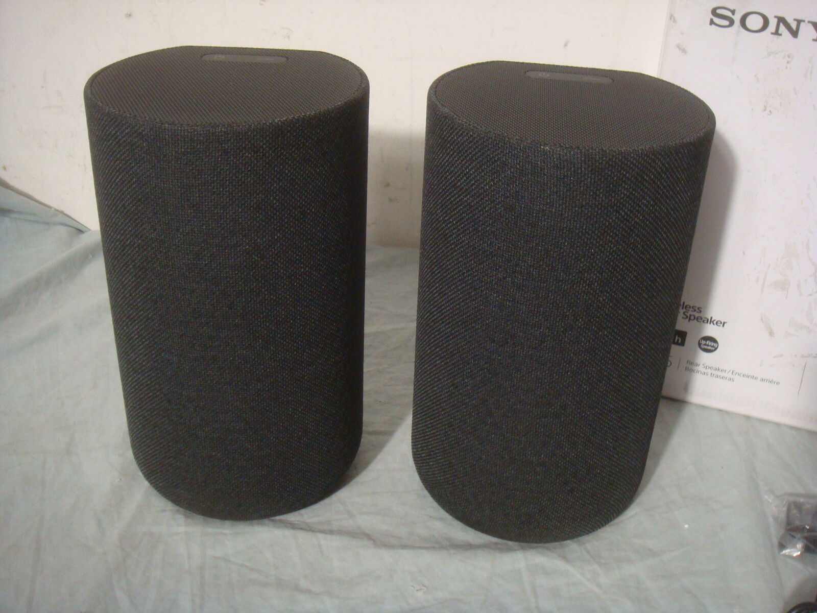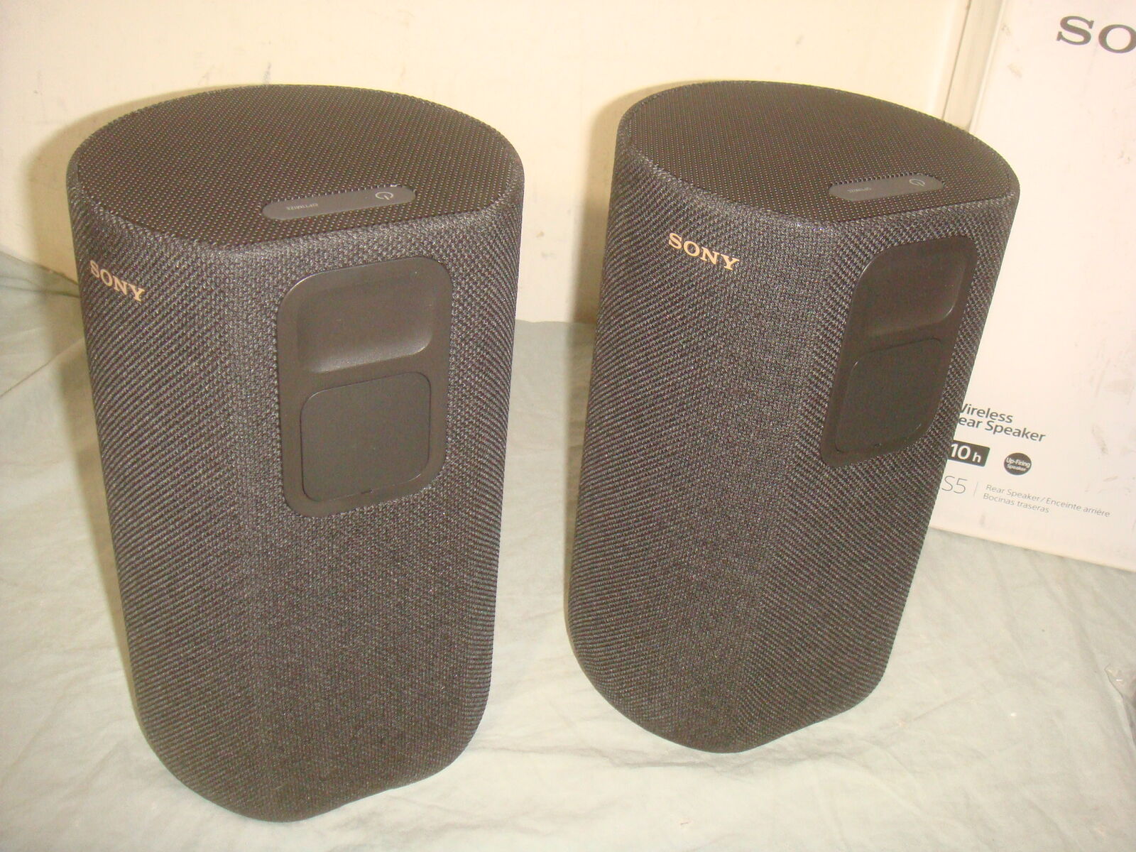 BRAND NEW PAIR OF SONY SA-RX5 WIRELESS REAR SPEAKERS WITH BUILT IN BATTERY FOR USE WITH HT-A7000/A5000. These are new, never used, only opened for the photos. They come with everything shown. This is your chance to save big-time so don't miss out!!