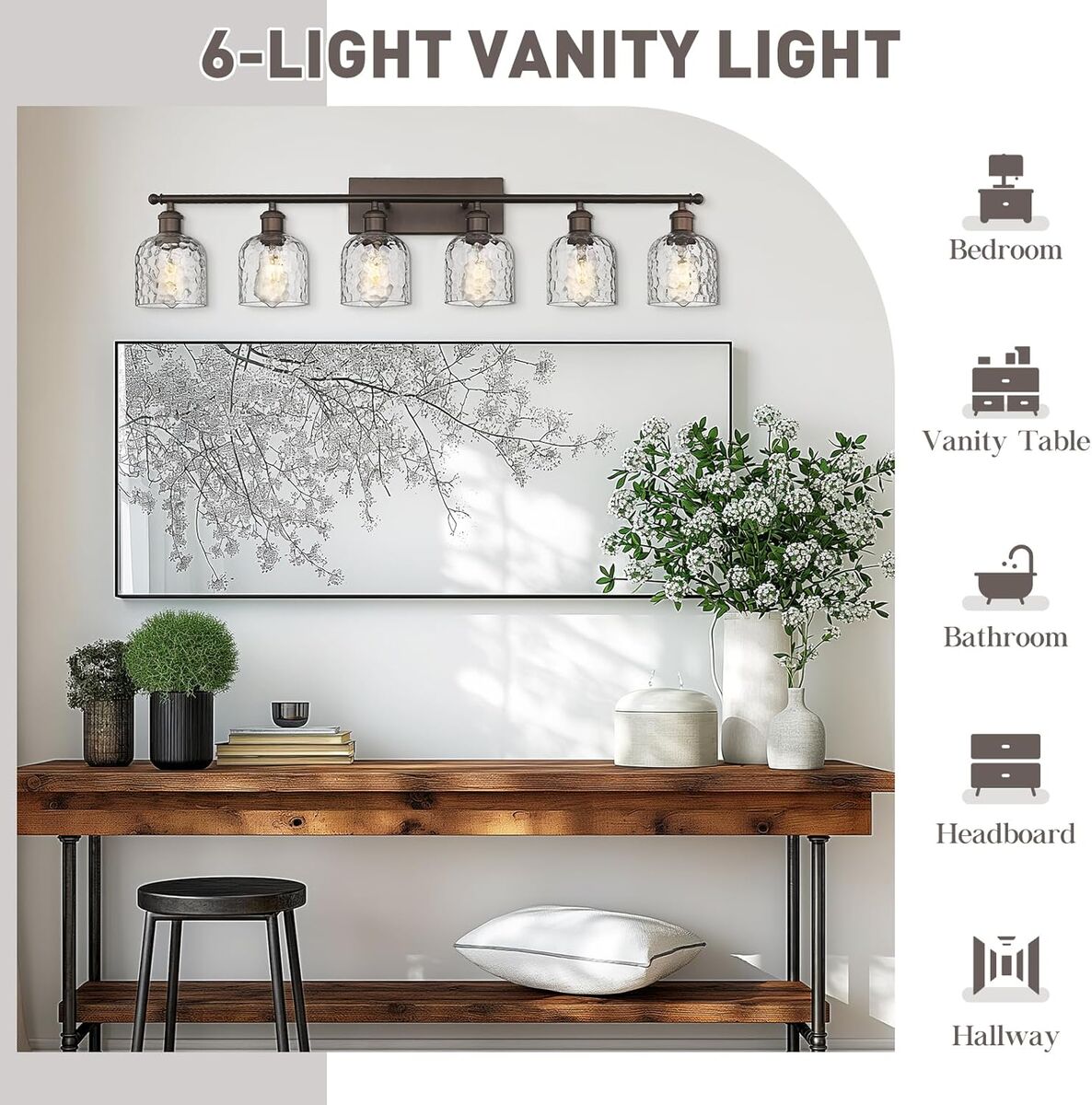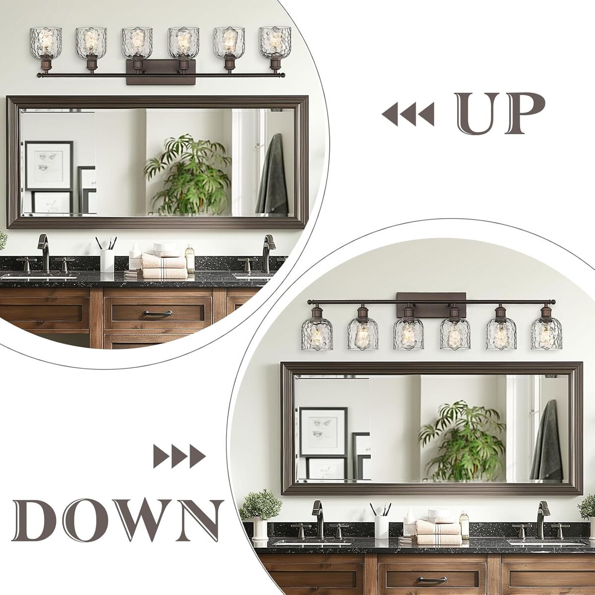 CashApp42" zeyu 6-Light Modern Oil Rubbed Bronze Finish with Clear Hammered Glass Vanity Light