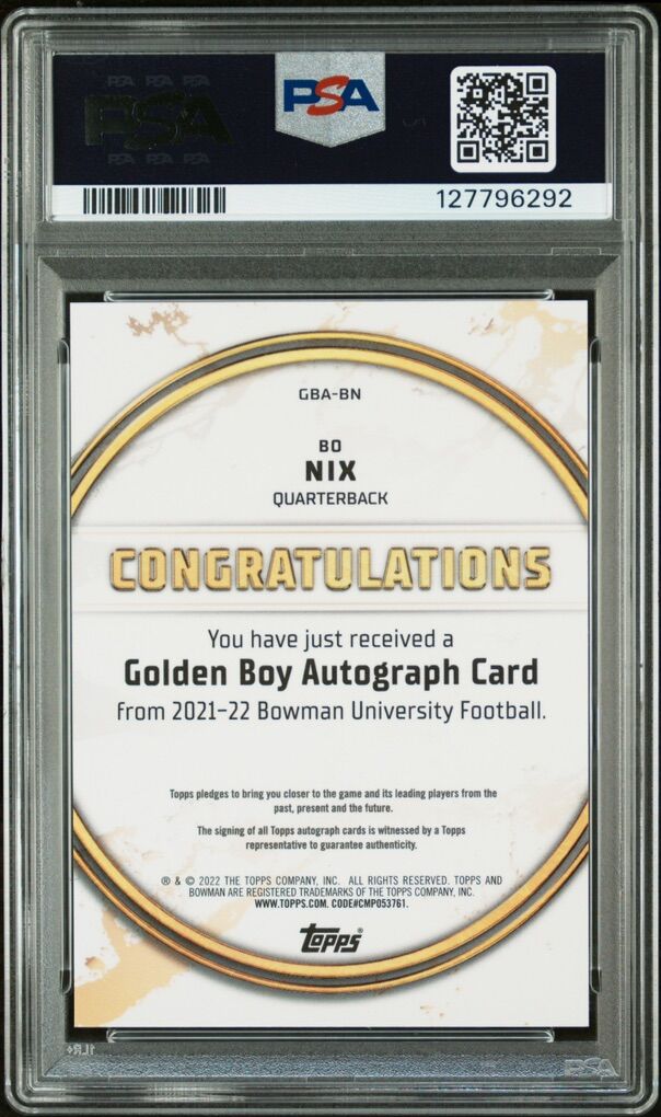 2021 Bowman U Bo Nix Golden Boy Auto PSA 10 Auto 10 Denver Broncos