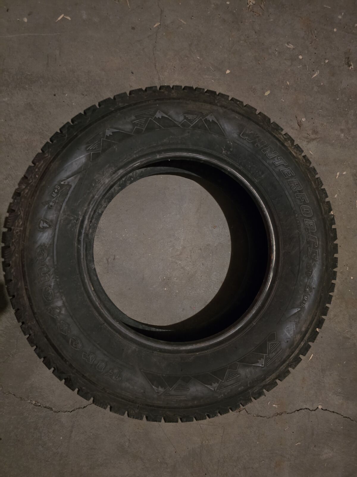VenmoGet ready for slippery roads this season with this pair of snow tires. These two tires are still in really good shape. They were only used on an F-150 to plow snow for a single business for a couple of seasons. They have the metal studs in the tread, and are made by Firestone, Winterforce. The sizes are P245/70 R17 108S. They won’t fit on my new truck/rims, so come pick them up for a great deal. Please text or call me any time if interested. Check out my other listings too! I offer deals on multi-item purchases. (No emails please.)