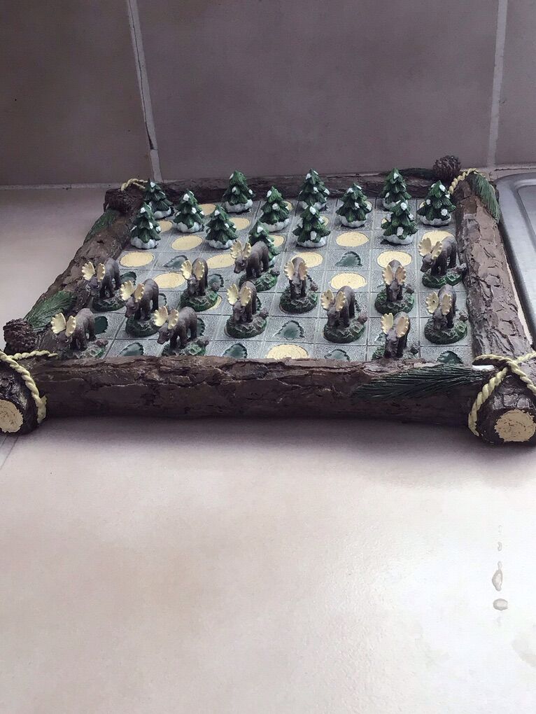 VenmoVery unique checkerboard with trees and moose playing pieces