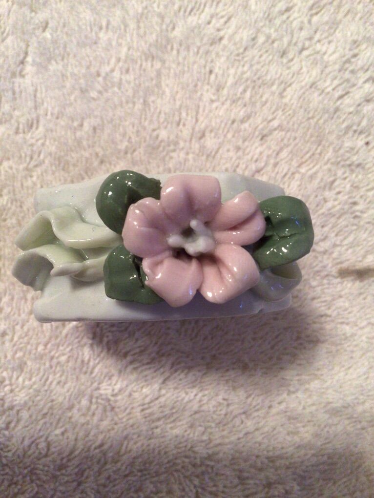 VenmoEight cute ceramic napkin rings in four flower patterns