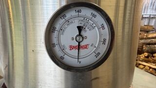 Large kettle for making beer wart. Great guage for regulating temperature.