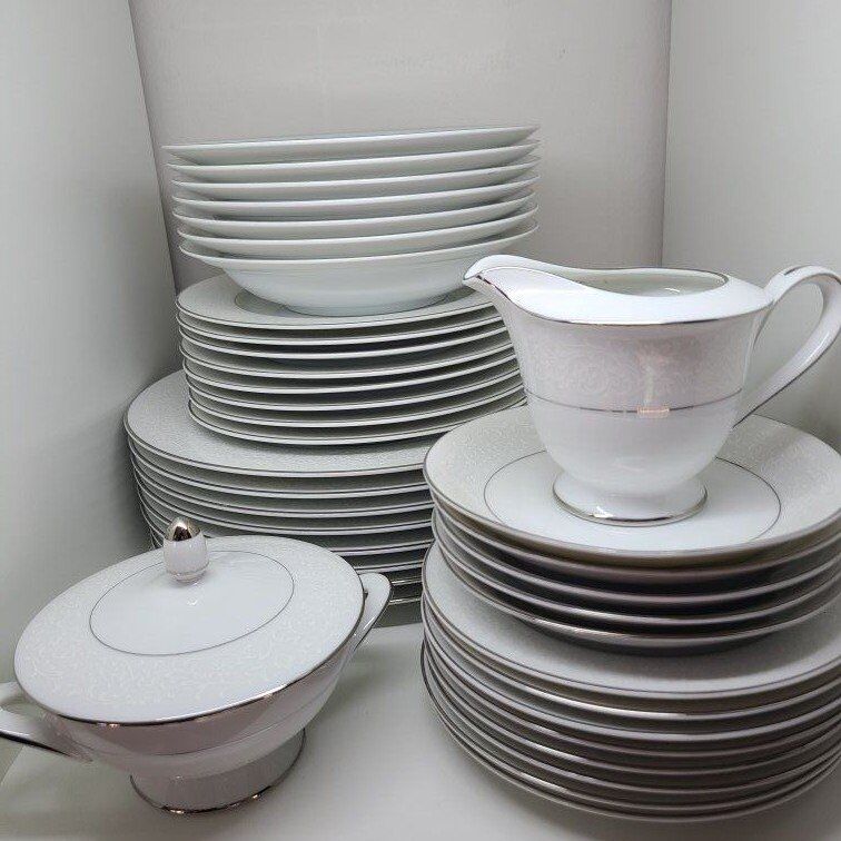 Elevate your table with the timeless charm of Wincraft’s Sienna 354 with white lace pattern. Elegant white china, a delicate lace motif, and a sleek silver trim make this set perfect for anyone who loves classic style with a little sparkle. Whether you’re hosting dinner or just upgrading your everyday dishes, this collection brings instant sophistication without trying too hard. Would be a lovely addition to a china hutch. Selling as a set or individual pieces. Please message or text if interested. $175 OBO