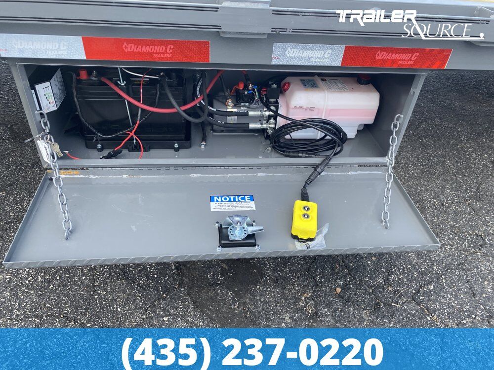 KEY STANDARD FEATURES 12' Hydraulic Dovetail The hallmark of the HDT model is the 12-foot fully automatic hydraulic dovetail. It features a 12.5-degree approach angle, making it ideal for low-clearance equipment. It typically includes an automatic locking mechanism and a wireless remote for operation from the cab or ground. Engineered Beam Technology Unlike traditional cold-formed I-beams, Diamond C uses their proprietary 16" Engineered Beam 2.0. This frame is taller and stronger where stress is highest but tapered to reduce weight where it isn’t needed, allowing for a higher payload without sacrificing durability. 30k Curt Cushion Coupler The trailer is equipped with a 30,000 lb Curt Cushion Coupler. This square-neck coupler uses an internal rubber dampening system to reduce the "chucking" and jarring felt in the truck during transit. High-Output Lighting Package Standard lighting includes all-LED tech, but the HDT specifically features: Bolt-on LED flood lights (2,000 lumens) for nighttime loading. Additional 3/4" clearance lights along the frame for high visibility. Wheel and Tire Specifications The FMAX-212 utilizes a tandem dual-wheel configuration to support its 25,900 lb GVWR. Tires: ST235/80R16 14-Ply Radial (Duals)