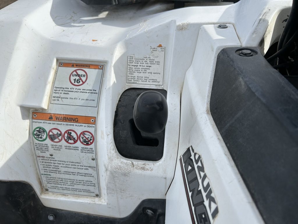 2022 Suzuki KingQuad 500AXi Power SteeringThe KingQuad 500AXi Power Steering is not just a new ATV, it’s a KingQuad ATV. Suzuki, the inventor of the 4-wheel ATV, has created the world’s best sports-utility quad with bold styling plus more capability and reliability than ever before. The legacy of the iconic KingQuad remains fresh and exciting, and is ready for you to join its history. The 2022 KingQuad 500AXi Power Steering is easy to ride on any terrain with the capabilities that only a KingQuad possesses.Features may include:ENGINEThe powerful 493cc, SOHC, single-cylinder, liquid-cooled, four-stroke engine is tuned to produce a wide powerband with strong top-end power.The engine’s head and cylinder are canted forward for a low center of gravity, resulting in reduced engine height and lower seat height. The engine also features a balancer shaft for smooth operation.The compact four-valve cylinder head has large intake valves and straight intake ports for superb cylinder charging efficiency. Screw and nut valve lash adjusters simplify maintenance.TRANSMISSIONThe QuadMatic™ CVT-type automatic transmission provides versatility and convenience with a fender-mounted gate-type shifter for high/low range selection. Its advanced engine-braking system minimizes free-wheeling with the throttle off and helps control the vehicle during descents.A compact torque-sensing limited-slip front differential offers potent traction plus light steering. A differential-lock system provides serious 4WD traction.Handlebar-mounted push-button controls permit easy selection between 2WD, 4WD, and differential-lock 4WD. An override button on the left handlebar can be used to override the normal speed limiter when getting out of mud.CHASSISTo increase rider comfort, make the ATV easier to ride on any terrain, and increase towing capacity, the KingQuad’s frame has thick-wall tubes and reinforced brackets in key areas.The base steering characteristics are now tuned to an “under-steer” condition for reduced effort and tighter turning in tight conditions. This permits higher, more comfortable handlebars to be used.The KingQuad’s advanced electric power steering system is higher capacity than the prior generation for significantly reduced steering effort that also damps vibration and jolts to the rider.UTILITY/CONVENIENCEThe 35-watt handlebar-mounted headlight illuminates the trail in the direction you are steering the ATV. Dual 35-watt headlights (with high and low settings) are part of the KingQuad's distinctive bodywork.The low-draw and bright LED tail light helps make the ATV visible in dark conditions while conserving power.A receiver-type trailer hitch mount makes it easy to select the type of equipment you want to move with the KingQuad’s generous towing capacity (up to 1322 pounds).Winch-ready mounts and wire conduit make winch installation simple.The multi-function instrument panel has improved appearance and visibility and provides service reminders based on running time or mileage. The instrumentation includes LCD readouts for speedometer, odometer, twin trip meter, hour meter, clock, fuel level, driving range, and drive mode. There are LED indicators for high, low, neutral, reverse, 2WD/4WD, and differential-locked 4WD and LED cautions for fuel injection and engine temperature.