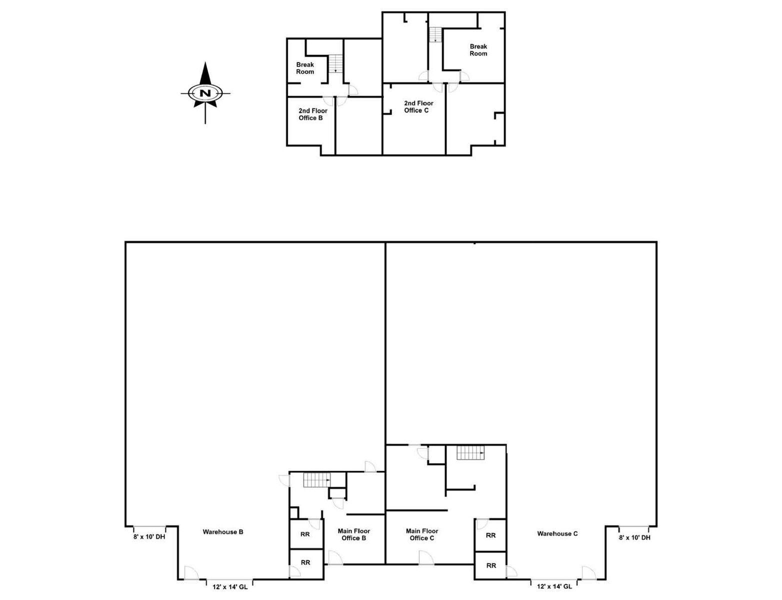 2,234 SF of office space (stacked with 1,156 SF up)