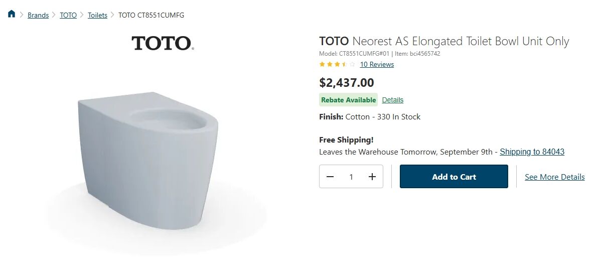 Key Features: Bowl only configuration - giving you the opportunity to select your matching tank Installs in a floor mounted configuration Elongated bowl extending out an extra 1-1/2 compared to a round configuration Constructed of vitreous china ensuring durability and dependability Concealed trapway - provides a smoother and less utilitarian appearance, a built in skirt hides the discharge passageway from view All hardware required for installation is included Condition & Details: The item is brand new and unused. Box was opened to inspect contents, take pictures and ensure condition. Perfect opportunity to get a premium toilet at a fraction of retail price. Retail price: $2,437.00 Pickup Location: Lehi, UT