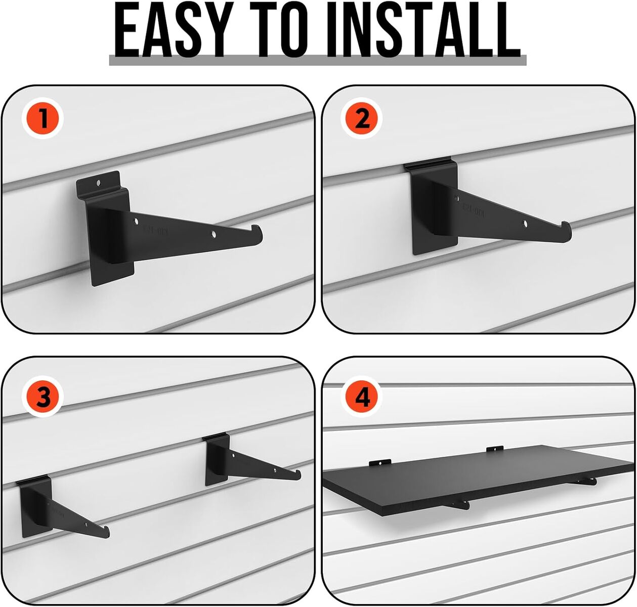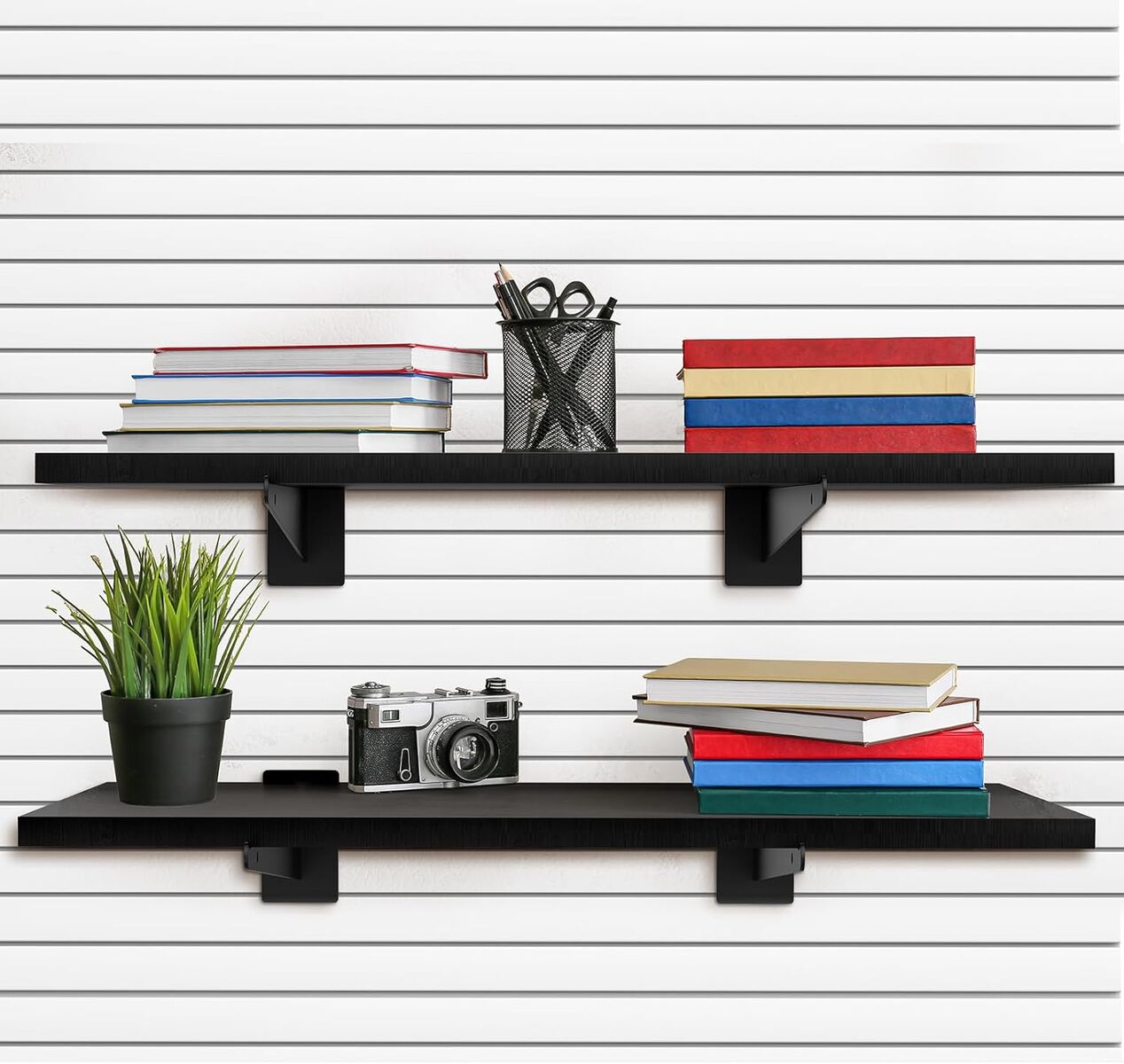 VenmoSlatwall Organizer Accessories Kit: you will receive 2 pack black wood slat wall shelves with 4 slatwall brackets, and you can arrange various items in order, save the space of room and say goodbye to messy things