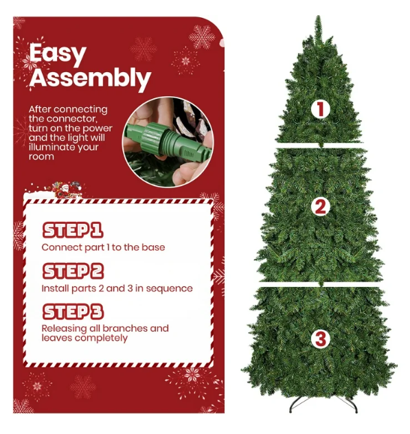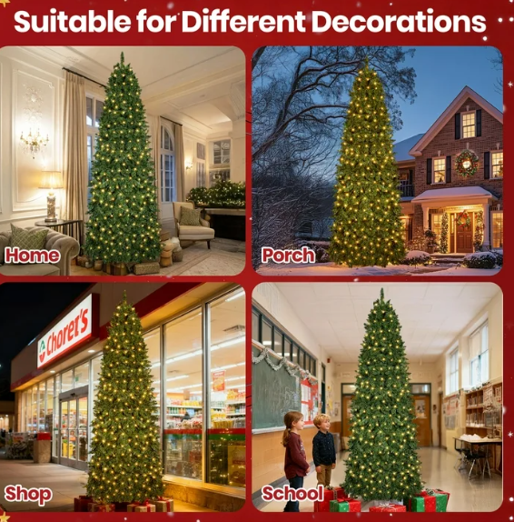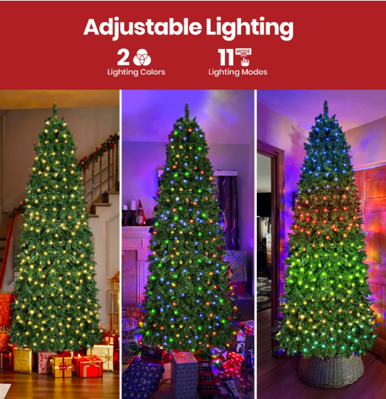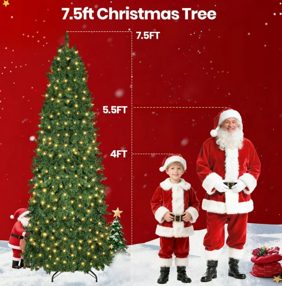 ZelleIlluminated Ambiance: Features 350 dual-color LED lights (warm white & multicolor) with 11 lighting modes, easily adjustable to create various festive atmospheres. Compact Dimensions: Measures 2.6 ft x 2.6 ft x 7.5 ft with a 20-inch metal base diameter and a net weight of 19.6 lbs.