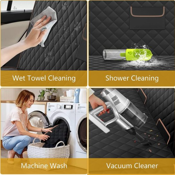 ZelleMade of 600D scratch-resistant Oxford fabric, EPE pearl cotton, and multi-layer waterproof materials, this product is waterproof, non-slip, scratch-resistant, wear-resistant, stain-resistant, and moisture-proof. It features an attractive appearance and long service life. Suitable for car backseats of all sizes, it is easy to install and clean. It effectively protects car seats from pet waste and can also be used when transporting goods to safeguard the car seat or trunk. Dimensions: 52.2 x 58.6 inches.