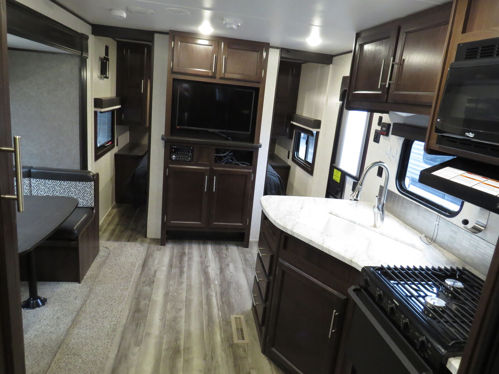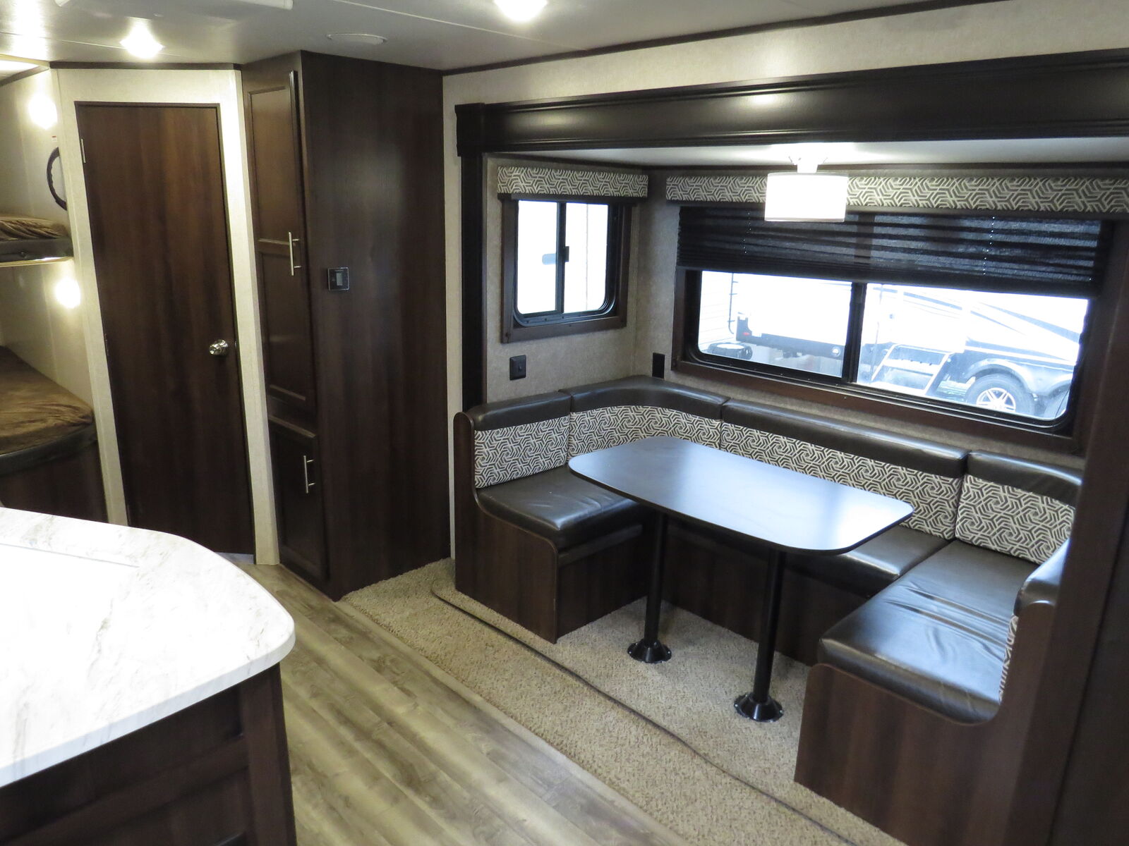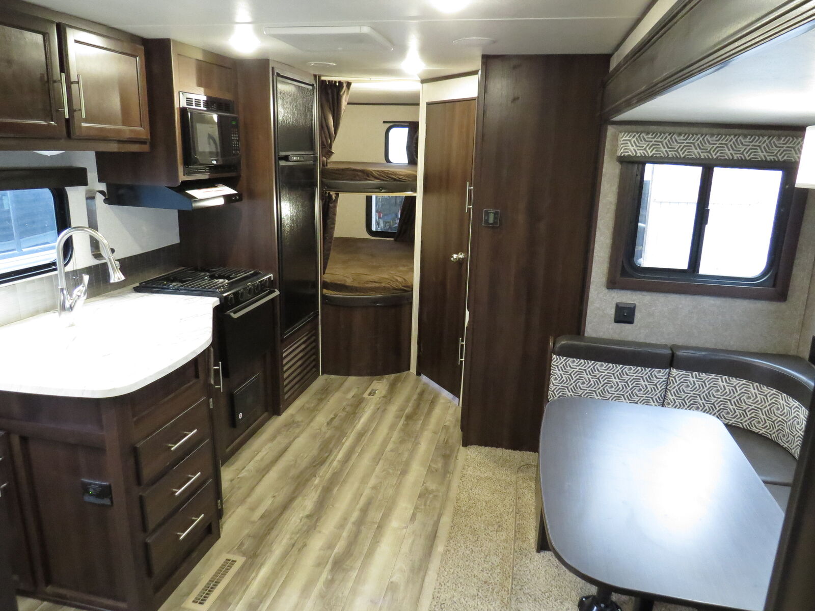 2 Big Rear Bunks, Big U Shaped Dinette Slide, Front Queen bed!, side Kitchen, Corner Bathroom, U Shaped Dinette Makes down to bed, A/C unit and Heat.