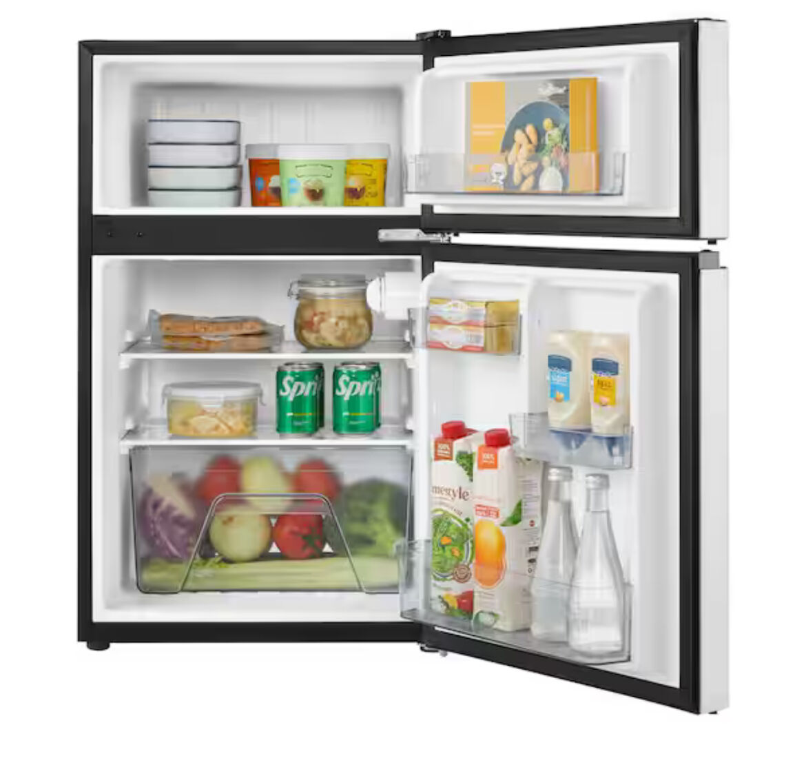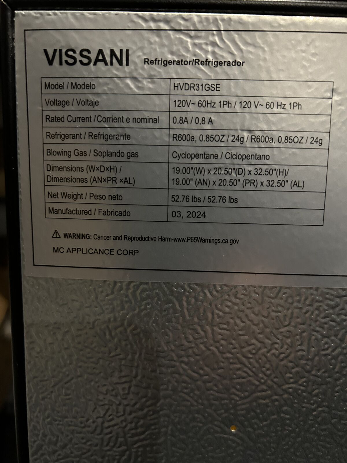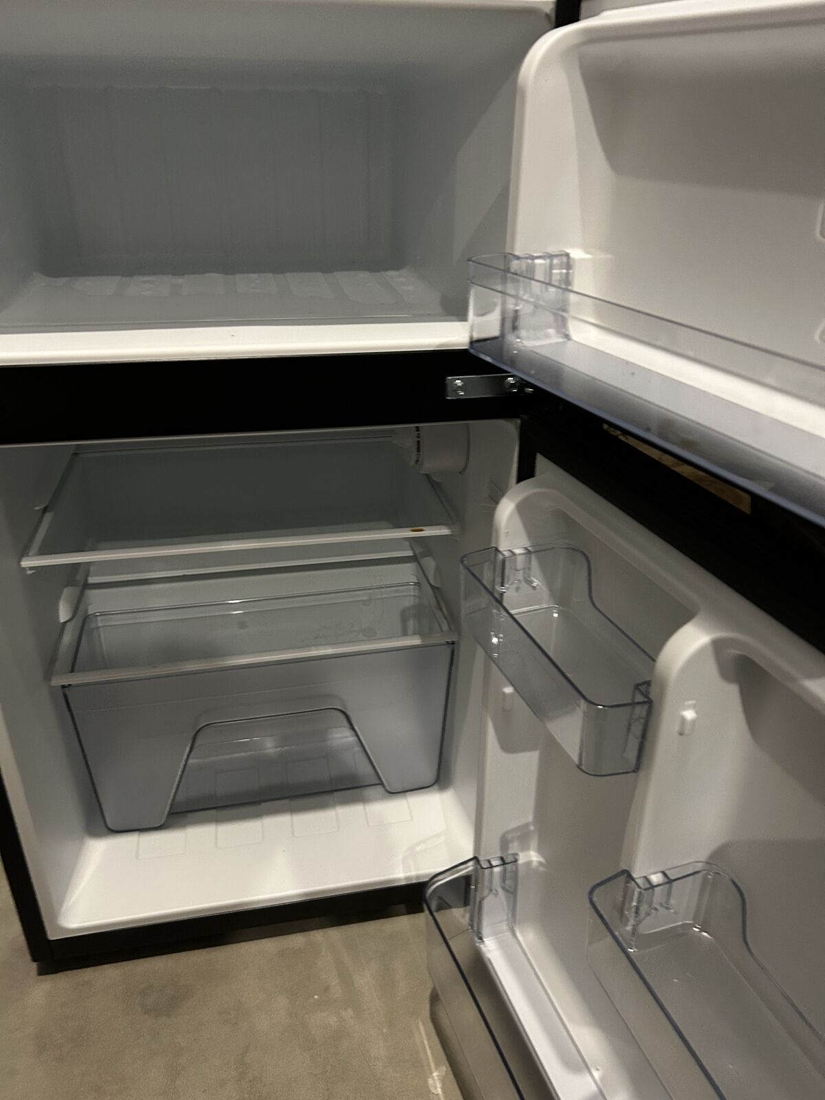Vissani brand, mini refrigerator, stai steel with freezer, energy star, retai$229 LED interior ligh, 2L beverage holder, removable glass shelves, adjusta leveling legs, reversible door swing.