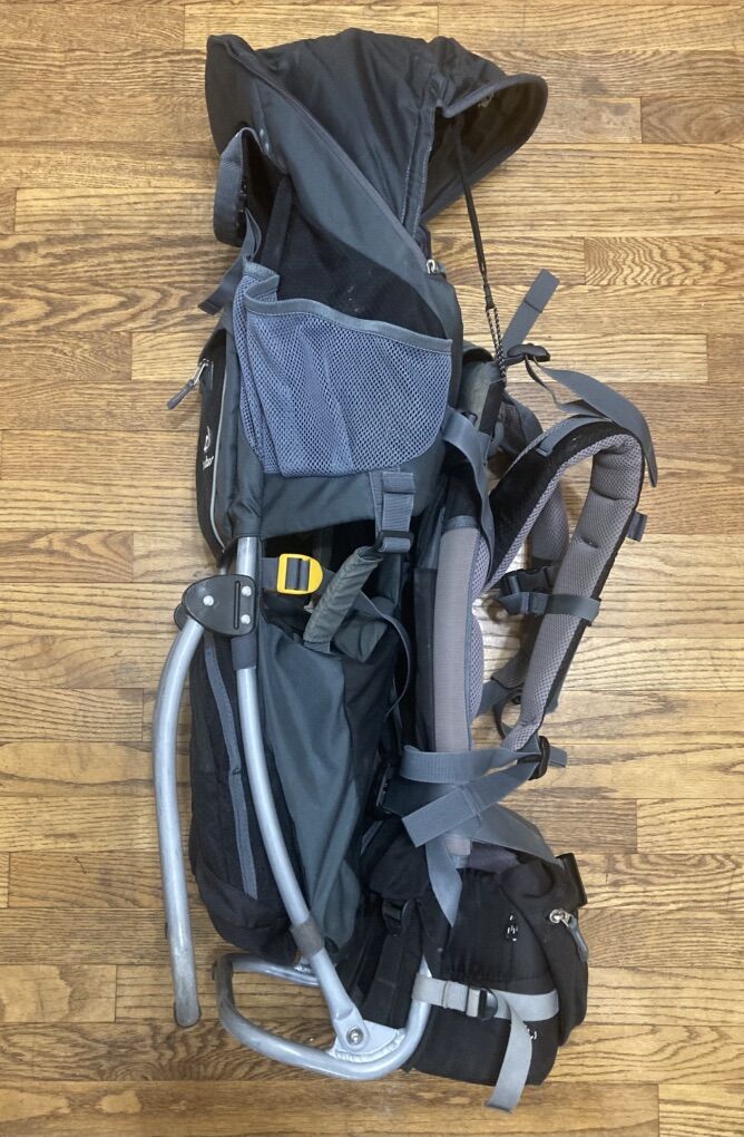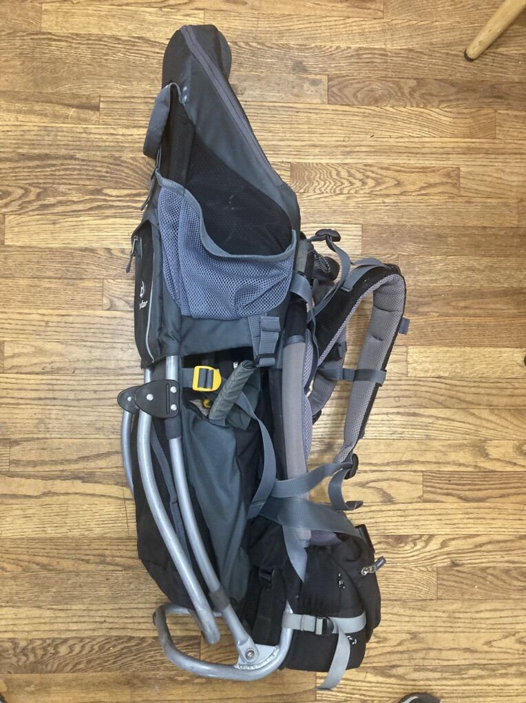 The Deuter Kid Comfort 3 Carrier is a backpack-style framed carrier made to carry kids from 16 pounds (who can sit upright unassisted) to 40 pounds on hikes.