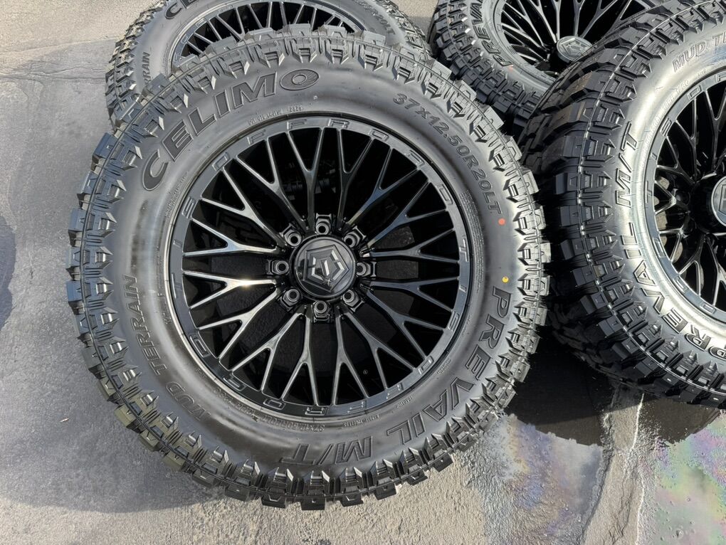 ApplePayBrand new package 20x10 TIS 566B wheels mounted and balanced on new 37x12.50r20 Celimo MT tires. 8x180 bolt pattern, these fit 2011 and newer chevy silverado and gmc sierra duramax trucks. Huge savings over retail! Call or txt 435-760-1194