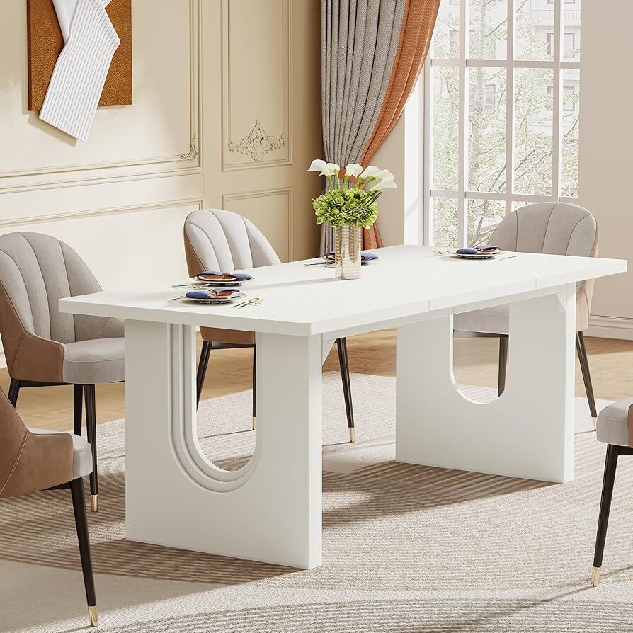 New in Box!!! With its sleek design and crisp white finish, this large dinner table effortlessly exudes modern sophistication. Upgrade your dining area with our stunning white dining table and create a space that effortlessly combines style, comfort, and functionality. It's the perfect centerpiece for any dining room, providing a place where friends and family can gather and talk or share a good meal