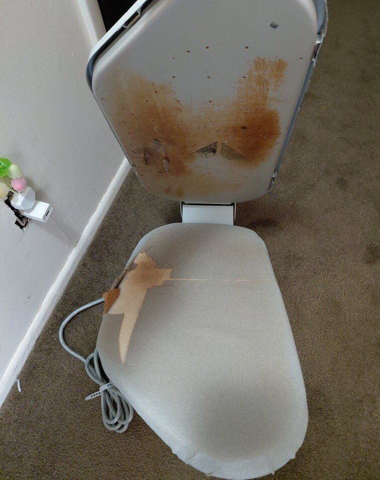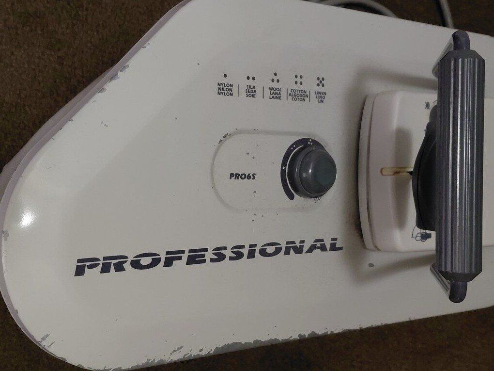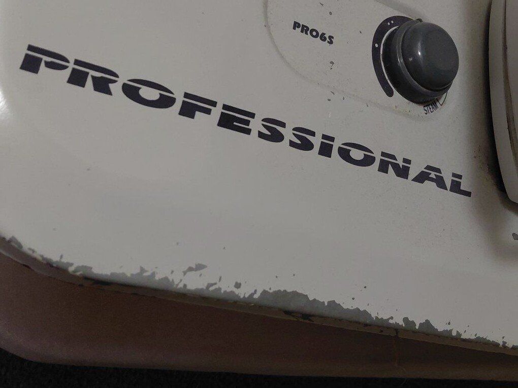 PayPalThis was my friend's grandmother's steam press. Still works great! The sole plate has normal build up. Bar Keeper's Friend or a baking soda paste can be used to clean it. Needs a new fabric cover.