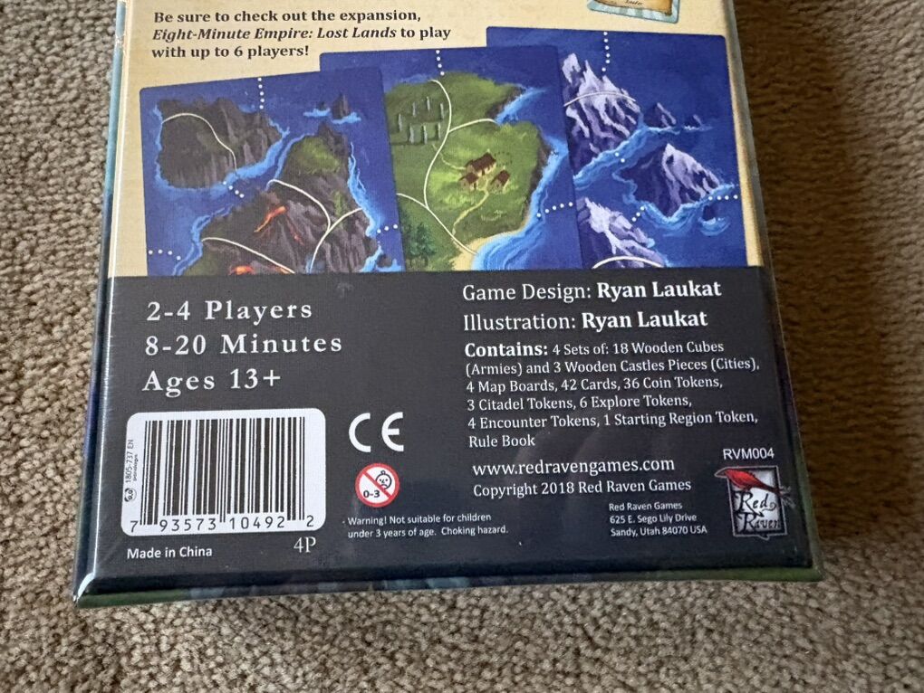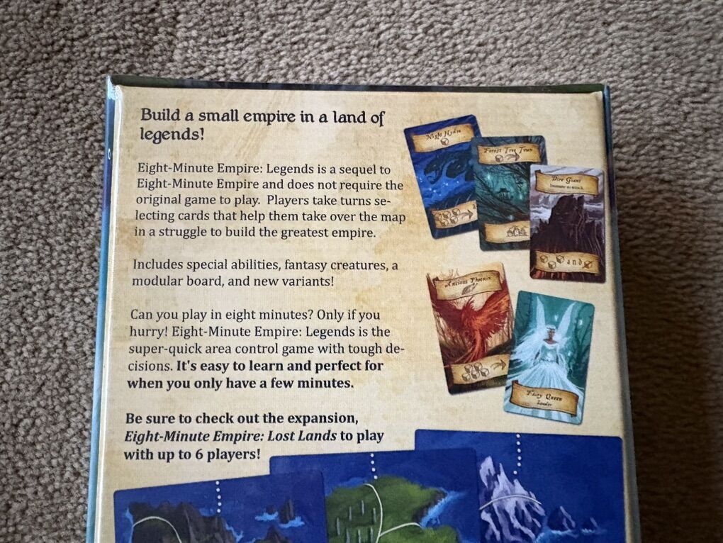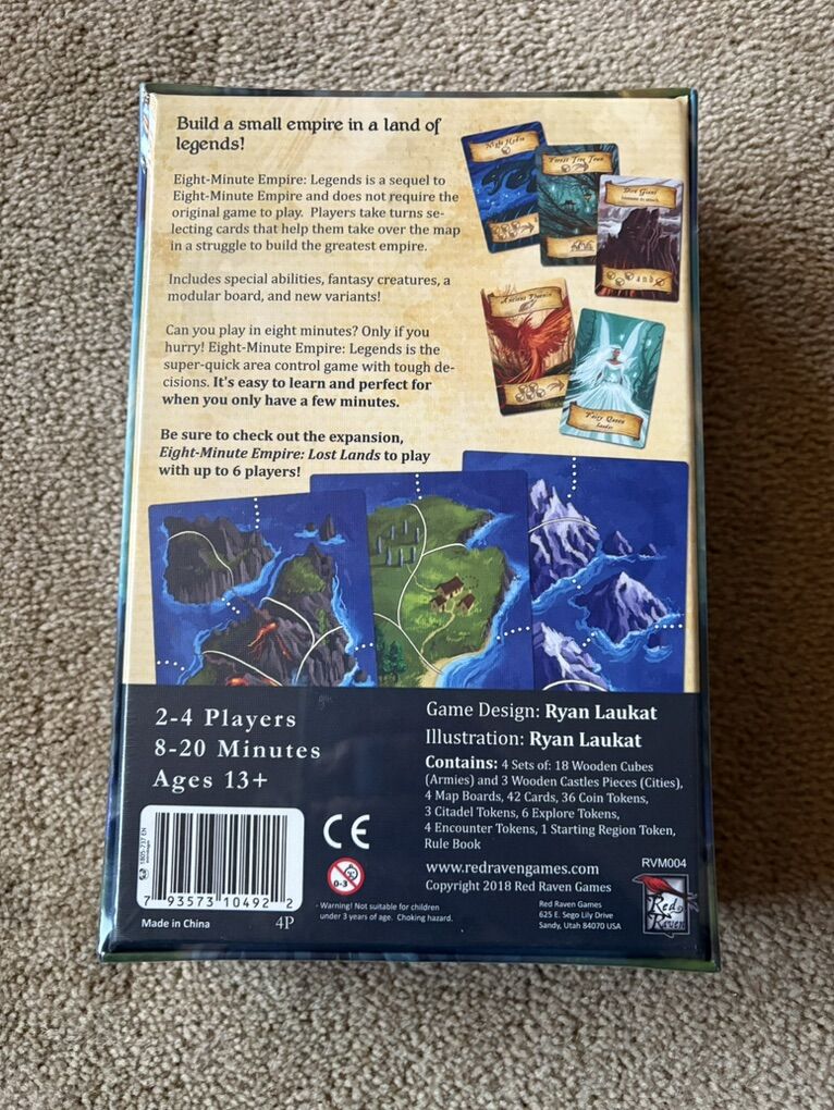 NEW (sealed in plastic) Eight-Minute Empire: Legends Game. Build a small empire in a land of legends! By Ryan Laukat, Red Raven Games, 2018. 2-4 players, ages 13+. New, unopened condition. Text only. Cash or Venmo.