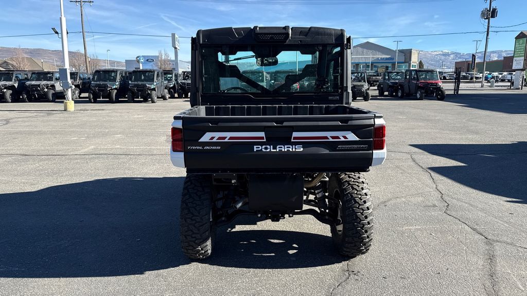 2025 Polaris® Ranger XP 1000 NorthStar Trail Boss Command Tougher Tasks and Terrain Trail Boss offers NorthStar comfort and big capabiity with arched A-Arms, self-leveling suspension, and active descent control. Features may include: COMFORT Premium refinement delivers all-day comfort for the longest workdays. CAPABILITY Handle big jobs with ease thanks to the added capability and enhanced work features of RANGER XP 1000 NorthStar Trail Boss. DURABILITY Trail Boss gives you the confidence to take on challenging terrain and overcome obstacles in your path. Factory-Installed Heating & Air-Conditioning System Pro Shield Cab System with Full Glass Tip-Out Windshield & Powered Front Windows Active Descent Control & Self-Leveling Suspension 29" Pro Armor X-Terrain Tires & 14" Wheels High-Clearance Arched A-Arms & 14" Ground Clearance Polaris HD 4,500-Lb. Winch with Synthetic Rope, Autostop & Wireless Remote 82 HP ProStar Engine 2,500 -Lb. Towing Capacity & 1,000-Lb. Box Capacity 12v Cargo-Box Power Port with Integrated Dash Switch 7" Display, Powered by RIDE COMMAND, with Factory Rear Camera RIDE COMMAND+ Technology