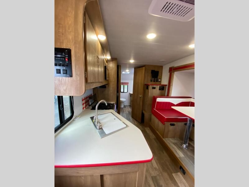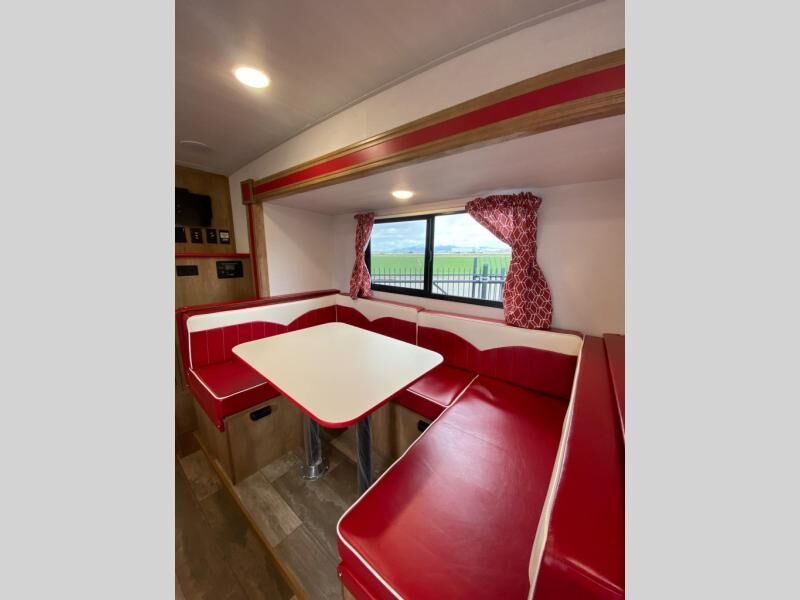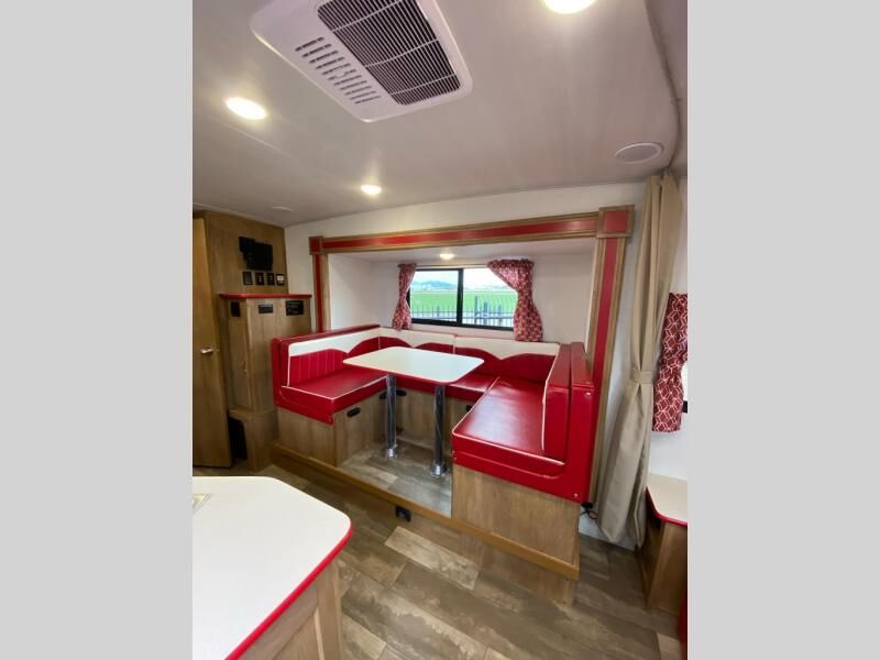 Are you looking for a classic travel trailer with more space and comfort? Look no further than this spacious travel trailer for all your adventures. A front semi-private bedroom with a privacy curtain will allow you your own space on the RV queen Murphy bed when the jack knife sofa isn't being used. The chef of your group can prepare breakfast on the cooktop and your crew can dine around the U-shaped dinette within the slide out. There are also under-seat drawers for extra blankets or board games. And check out the exterior with an outdoor snack kitchen, a pass-through storage, and an electric awning with LED lights!