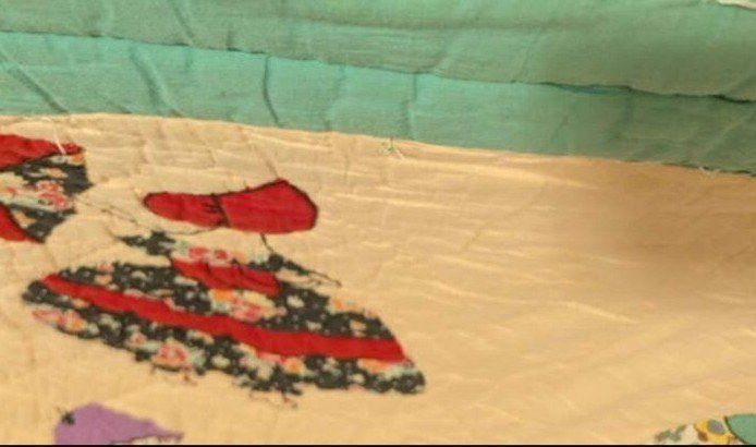 Venmocolorful unique vintage 1930 fabrics in Sun bonnet Sue pattern , hand stitched quilt . great condition being almost 100 years old .with some wear on the binding. would make cute wall hanging or bed cover in bed room . It's possible to meet in Salt Lake area to deliver to buyer. size . 93 in x73 in