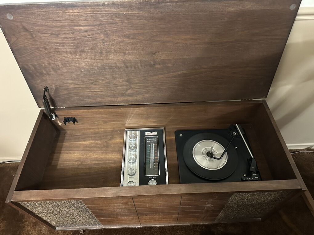 Vintage Morse record player and am/fm radio. Powers on and record player spins. Needs some TLC and needle. Asking $250/offer.