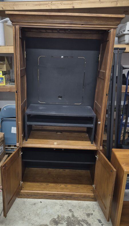 Venmomade for a TV. but can be converted into whatever you would like. we used it for a mini fridge cabinet. it is lockable. 37.5 " wide x 30" deep x 78.5" high
