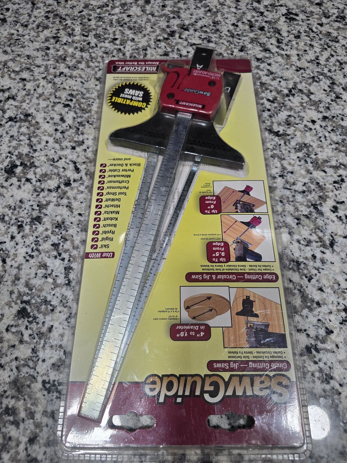 VenmoThis saw guide by Milescraft is an awesome accessory for jig saws, circular saws, and other woodworking tools. It can be used to rip down sheet goods with offset cuts, angles, or even circles. It is compatible with Skil, Rigid, Ryobi, Bosch, Kobalt, Makita, Hitachi, DeWalt, Tool Shop, Performax, Craftsman, Milwaukee, Porter Cable, Black and Decker, and many others.
