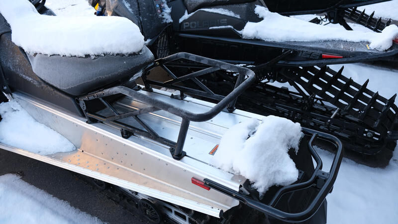 The 550 Voyageur 144 comes standard with a rugged steel cargo rack capable of carrying 5 gallon pails and up to 30 lbs. — and an accessory cargo bag is ideal for carrying gear you want protected from the elements. The standard tongue-style hitch is hinged low for greater versatility and better towing.