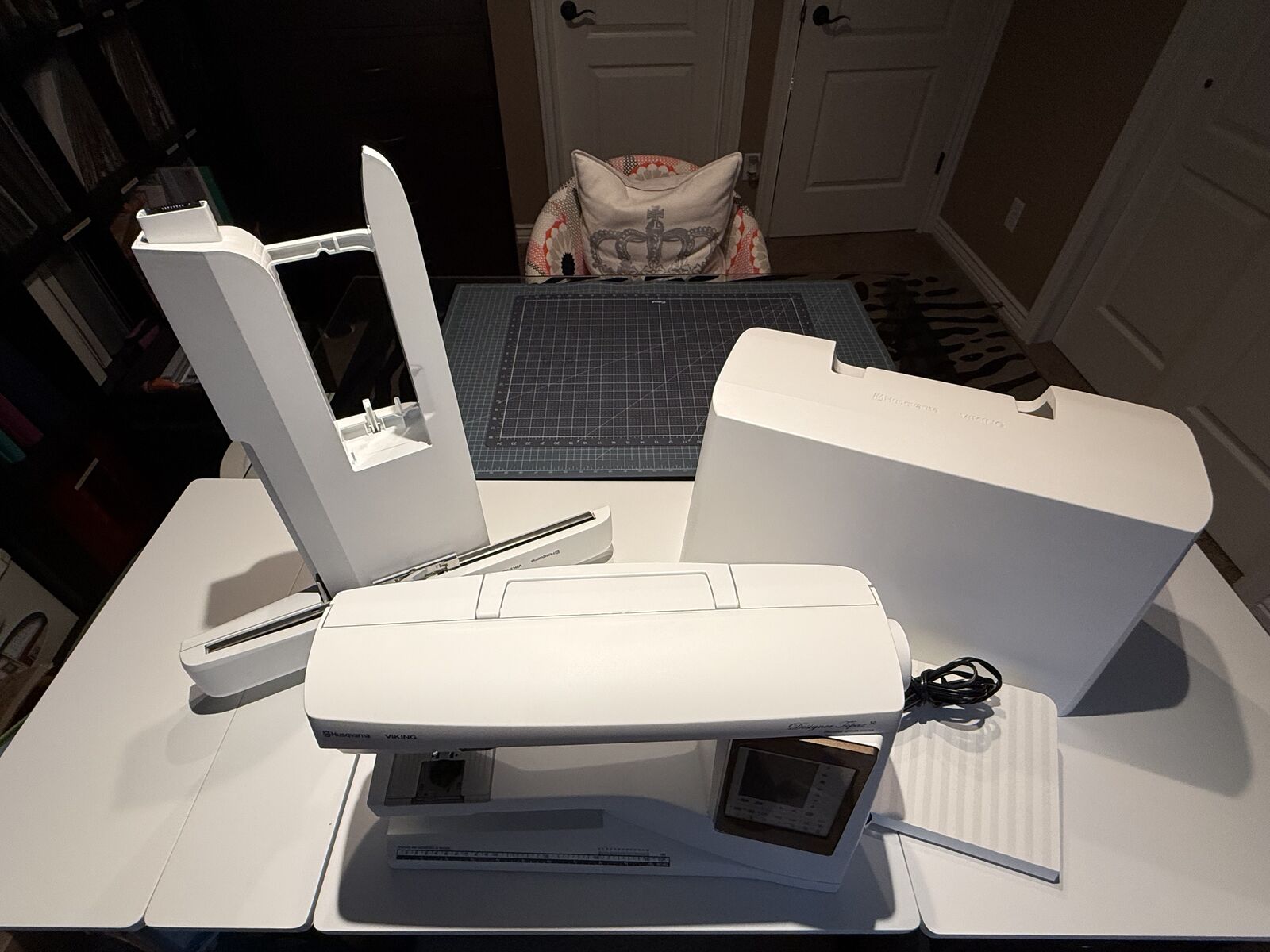 Venmo$3000.00 O.B.O. Husqvarna Designer Topaz 50 Embroidery/Sewing Machine and White Sewing Table. Only used a handful of times. This machine works beautifully. The embroidery is professional quality. The skill level was too high for me (I was only needing a sewing maching) and I didn't have the time to learn it. My loss is your gain. Embroidery Design Editing and Save functions let you personalize and refine your designs with greater accuracy. Simply enter fabric type, weight, and sewing technique and all the settings are programmed automatically—stitch, stitch width, stitch length, thread tension, sewing speed and presser foot pressure. A spacious embroidery area allows you to stitch intricate, large-scale designs with a single hooping. Enjoy a spacious 360 x 200mm (14¼” x 8″) embroidery area. The generous sewing surface offers an impressive workspace with 250mm (nearly 10″) to the right of the needle—ideal for large projects. You can choose from hundreds of stunning stitches and embroidery designs to spark your imagination and fuel endless creativity many features to list. Too many features to list. AS-IS No Warranties are expressed or Implied.