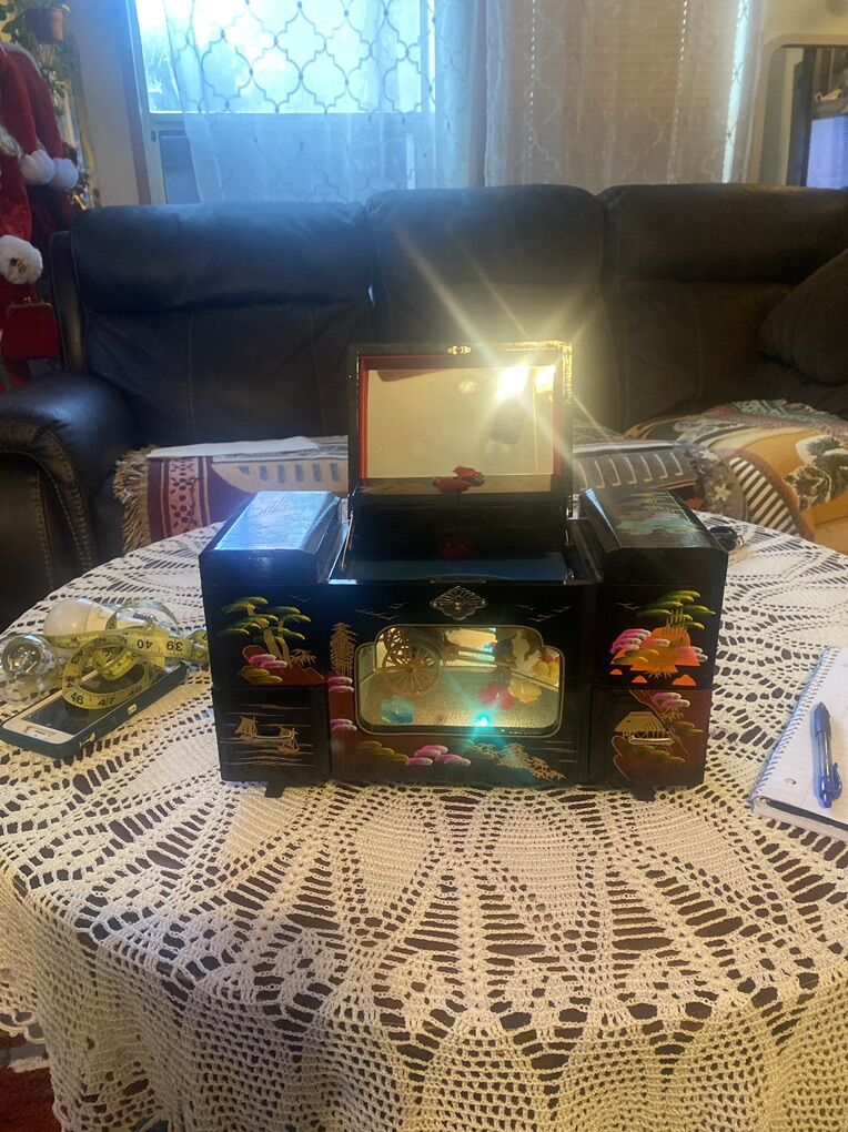 Mini Vanity. Musical. Of. Tire of carreta. Inside of it. Is. SPIN Like. New