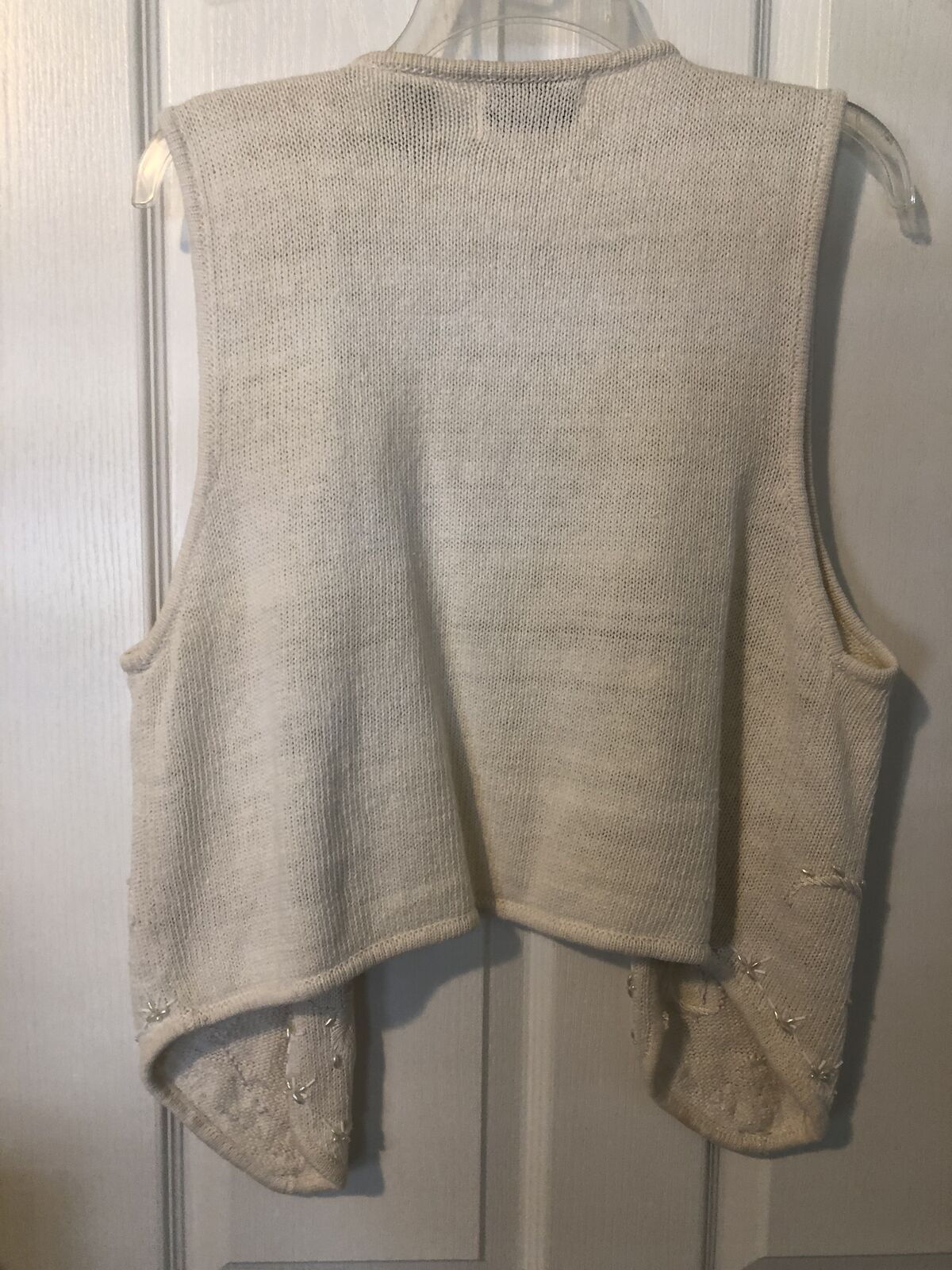 VenmoAdd a touch of elegance to your wardrobe with this beautiful Carolyn Taylor beige vest featuring delicate pearl accents and embroidered detailing. This stylish piece is perfect for dressing up a casual outfit or adding a polished layer to a blouse or dress.