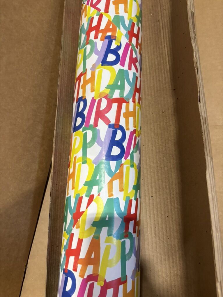 ZelleNew premium roll of “Rainbow Birthday” gift wrap. The roll measures 417 feet x 24 inches wide. This retails for $149 online.