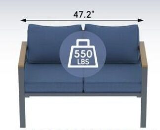 Aluminum patio love seat with navy cushions with cover no pillows