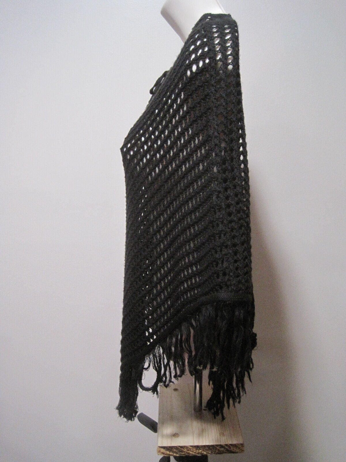 This unbranded women's medium acrylic black shawl sweater wrap with fringe trim is a versatile and stylish addition to any wardrobe. The open-knit argyle/diamond pattern and sleeveless design make it perfect for a variety of occasions, from casual outings to parties or even traveling. The breathable material and regular fit ensure comfort and ease of movement. Easy to care for with its machine washable fabric, this wrap is a timeless piece that can be worn year-round in any season.