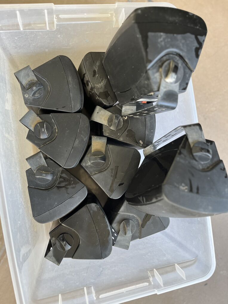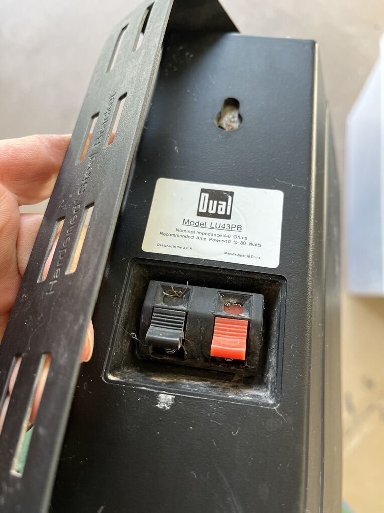 Used these LU43PB speakers for ambience music at outdoor festival. They hold up just fine in the weather. They have a great mounting bracket that can turn to many angles and lock into place where you want it. $20 each or $180 for all ten.