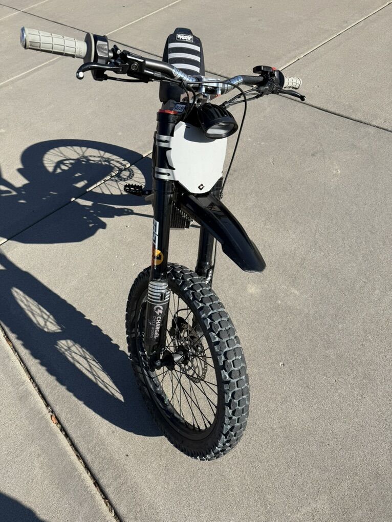 ApplePayThis thing is awesome, basically brand new. Have over 1800 worth of upgrades on it. Comes with a ton of extras. It got upgraded forks, triple clamps, pegs, peg brace, peg bracket, handle bars. Seat cover, bar mount, Rotors, tires. Most of the upgrades are all warp 9. 50mph top speed and around 40-60 miles of range on average. Works and runs like New, message me if you have any questions.