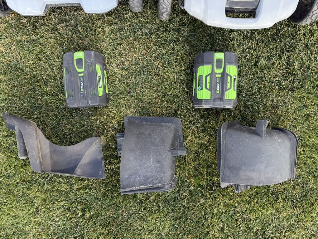 ApplePayThe tools worked perfect, does not come with the charger. The batteries are included. One battery works, but will sometimes cut out if you hit it on the ground. It will start working again and you pop it back in just like normal. The other battery was left uncharged for a long time and I can’t get it to charge again. The mowers themselves work perfect and are both self-propelled. One of the mowers is dual blade.