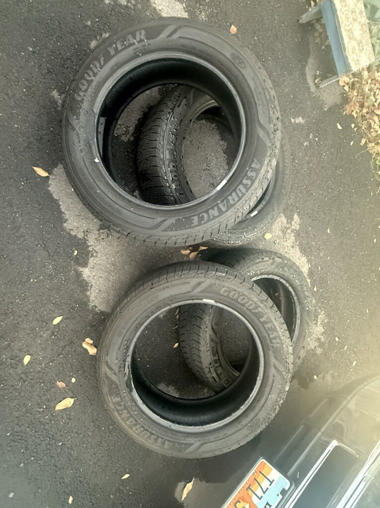 I have 4 Good year Assurance tires with lots of tread left and wearing evenly! Size is 225/60 R18 all 4 for $100!!! Great price AS IS No Warranty thanks for looking Cash Sale only